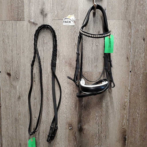 Monocrown Rsd Dressage Bridle, Crank, Flash, Rsd/FS Braided Reins, Bling *like new, mnr creases & curled ends Schockemohle Size: F *H $185.00