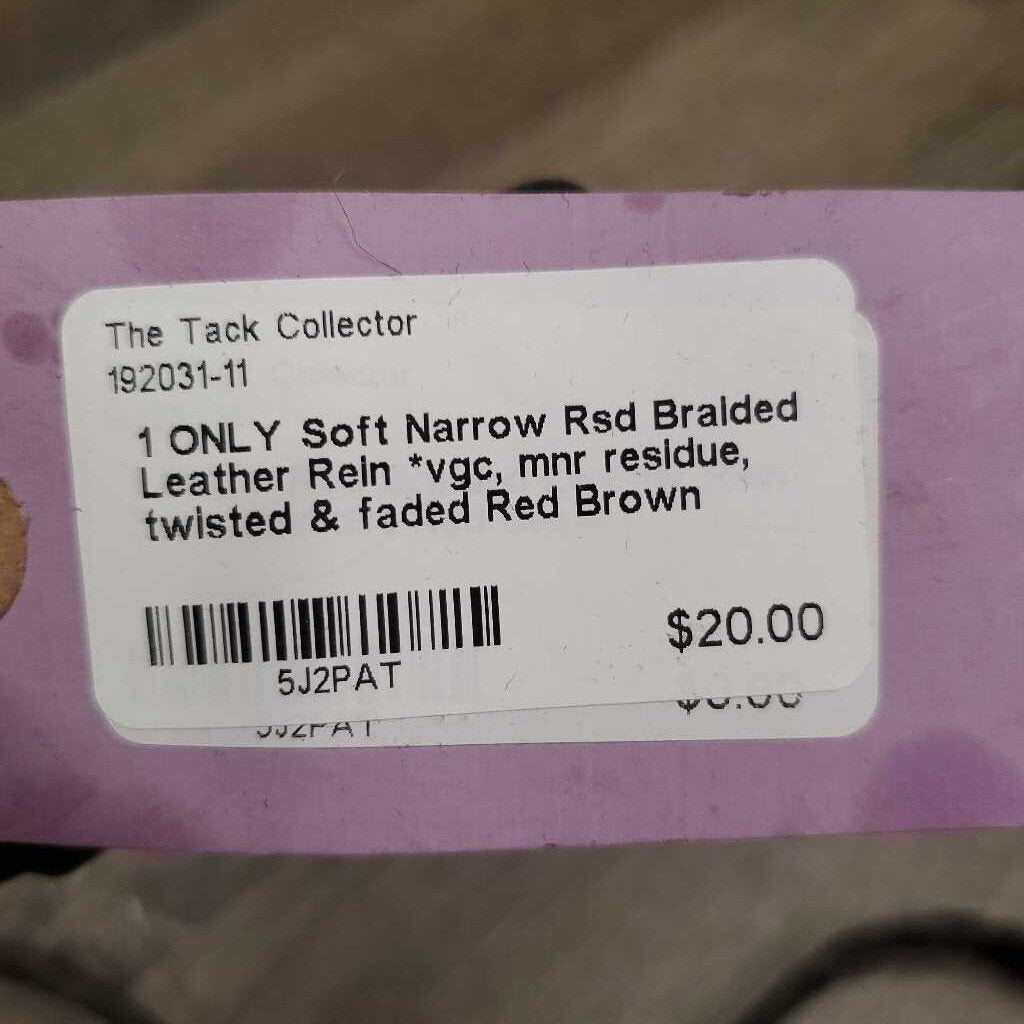 1 ONLY Soft Narrow Rsd Braided Leather Rein *vgc, mnr residue, twisted & faded