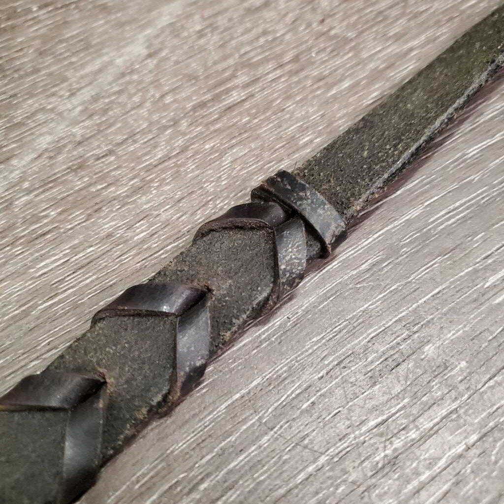 1 ONLY Wide Leather Braided Rein *gc, clean, scrapes, rough back, crackles, dry, stiff