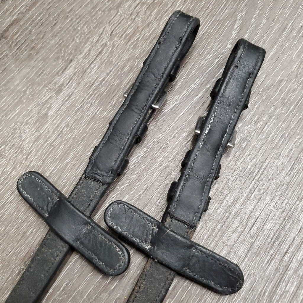 Cotton Web & Soft Leather Reins, Buckles, Finger Stoppers *vgc/gc, chewed end, clean, dirt/residue, rough edge