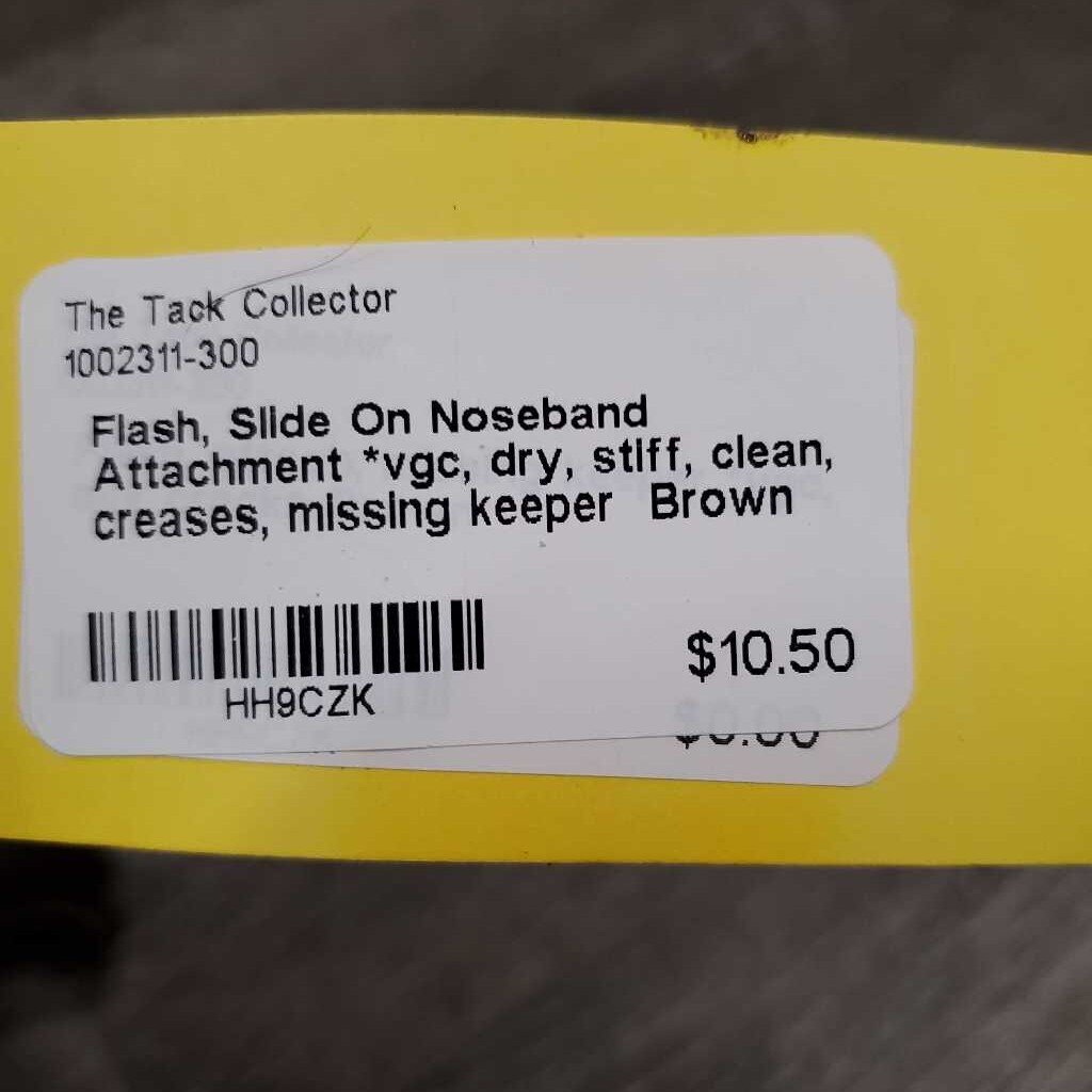 Flash, Slide On Noseband Attachment *vgc, dry, stiff, clean, creases, missing keeper