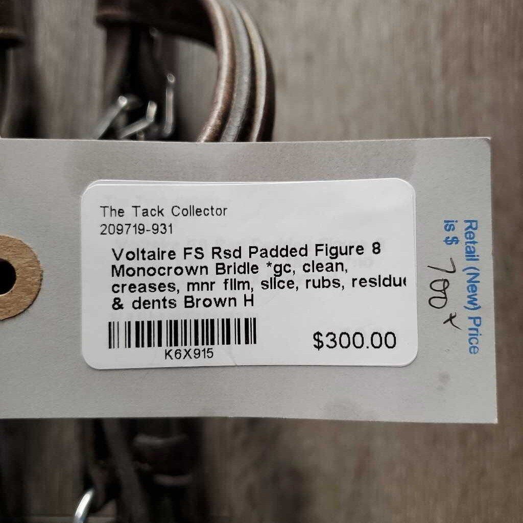 FS Rsd Padded Figure 8 Monocrown Bridle *gc, clean, creases, mnr film, slice, rubs, residue & dents