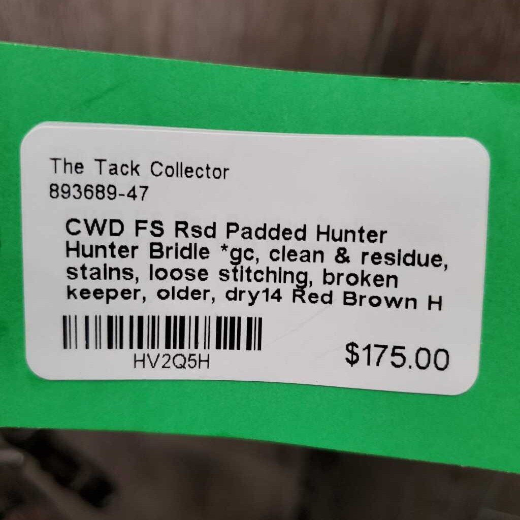 FS Rsd Padded Hunter Hunter Bridle *gc, clean & residue, stains, loose stitching, broken keeper, older, dry14