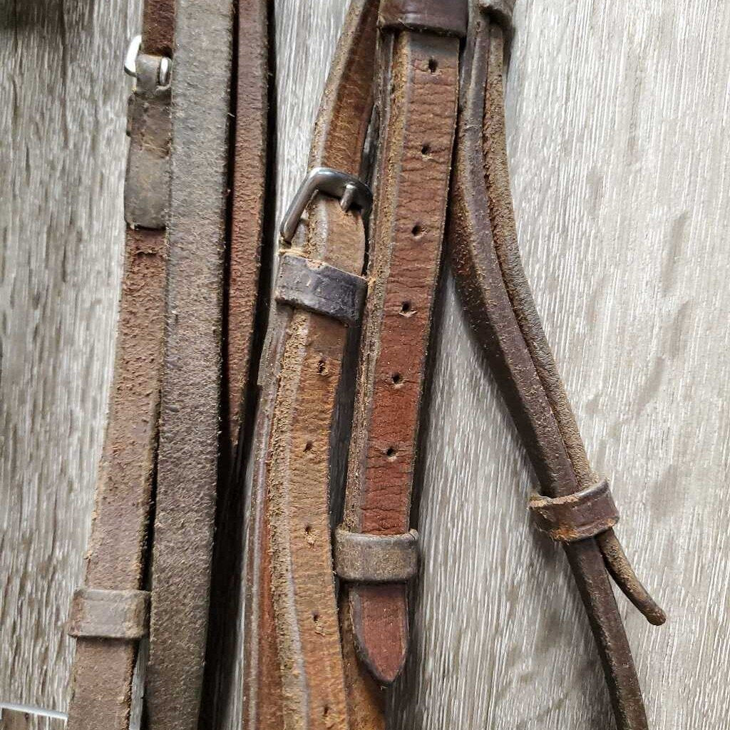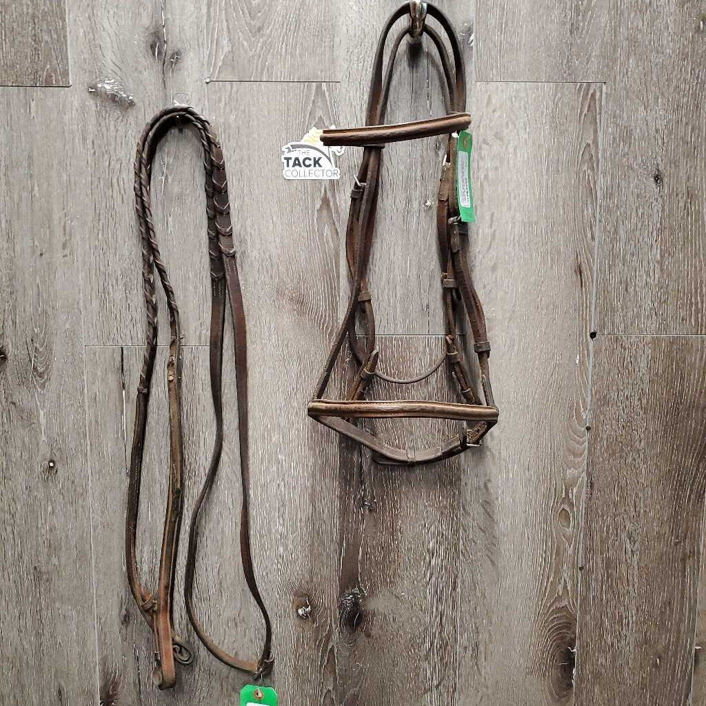 FS Rsd Thick Bridle, Braided Reins *gc/fair, dry, dirt, rubs, broken laces, film, stains, older