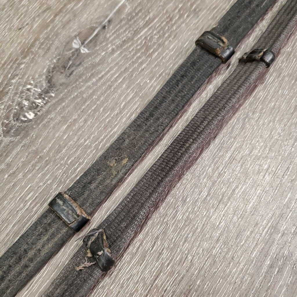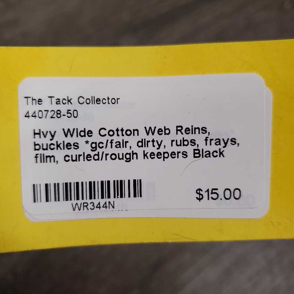 Hvy Wide Cotton Web Reins, buckles *gc/fair, dirty, rubs, frays, film, curled/rough keepers