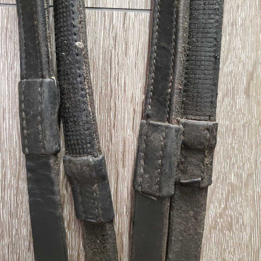 Monocrown Bridle, Bling, Flash, Rubber Lined Reins *gc, dirty, rubs, mismatched, tight & missing keepers, edge scrapes, thin/sticky rubber