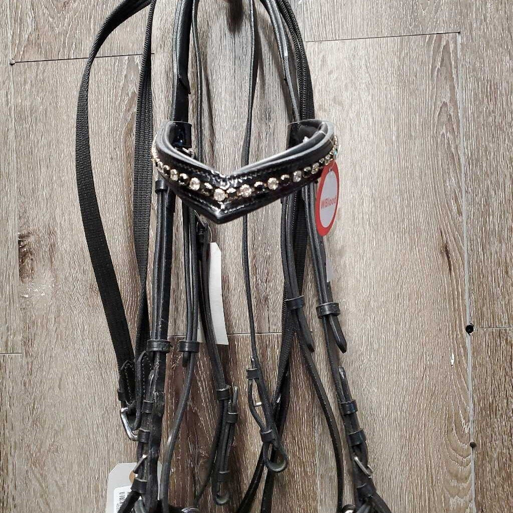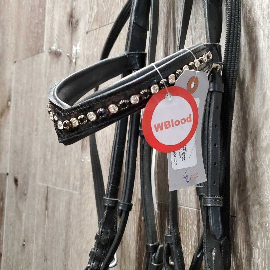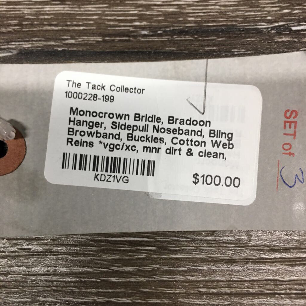 Monocrown Bridle, Bradoon Hanger, Sidepull Noseband, Bling Browband, Buckles, Cotton Web Reins *vgc/xc, mnr dirt & clean