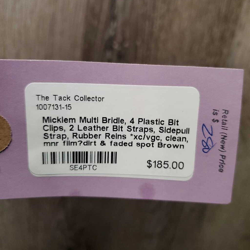 Multi Bridle, 4 Plastic Bit Clips, 2 Leather Bit Straps, Sidepull Strap, Rubber Reins *xc/vgc, clean, mnr film?dirt & faded spot