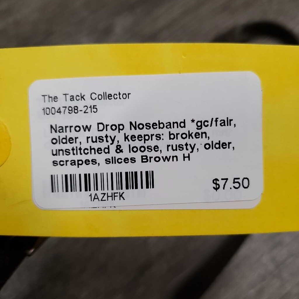 Narrow Drop Noseband *gc/fair, older, rusty, keeprs: broken, unstitched & loose, rusty, older, scrapes, slices