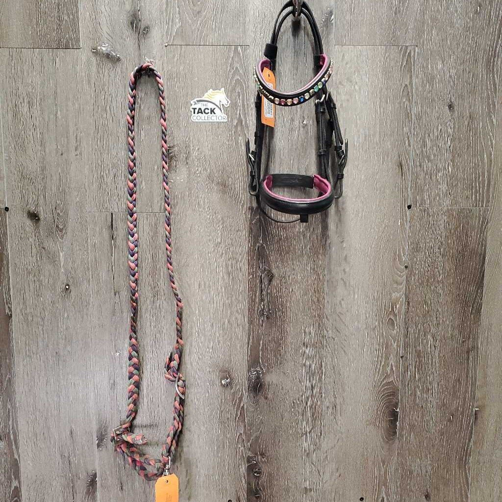 Padded Bridle, Bling Browband, Braided Roper Reins *gc, dirty, NO Flash, missing bling