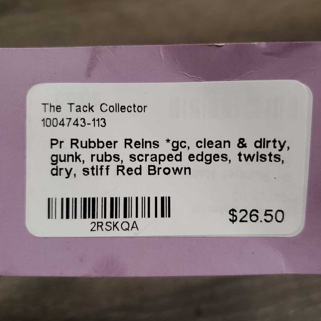 Pr Rubber Reins *gc, clean & dirty, gunk, rubs, scraped edges, twists, dry, stiff