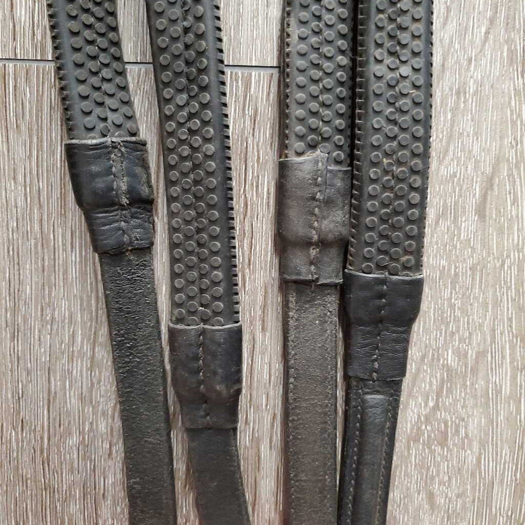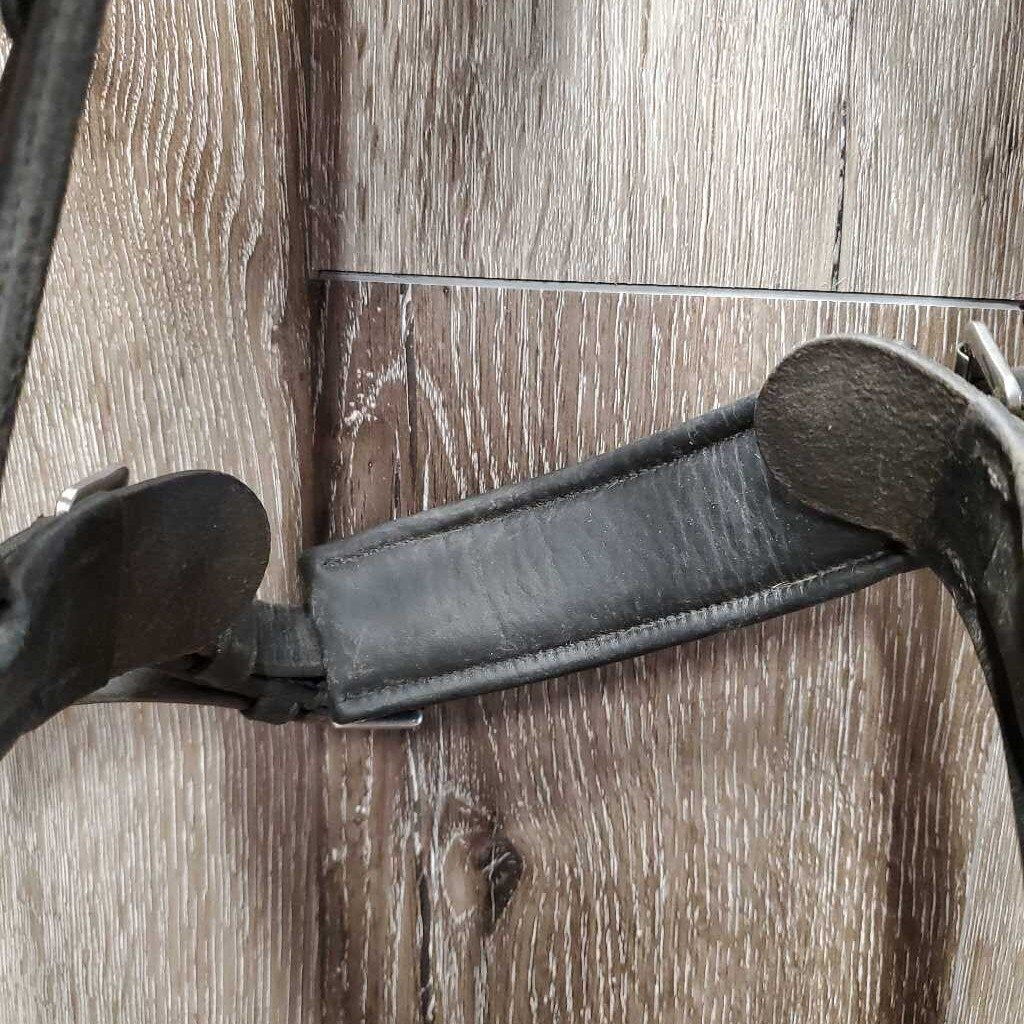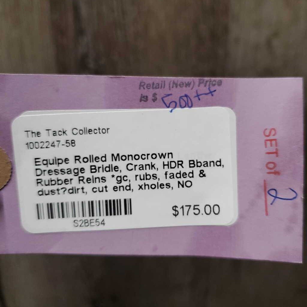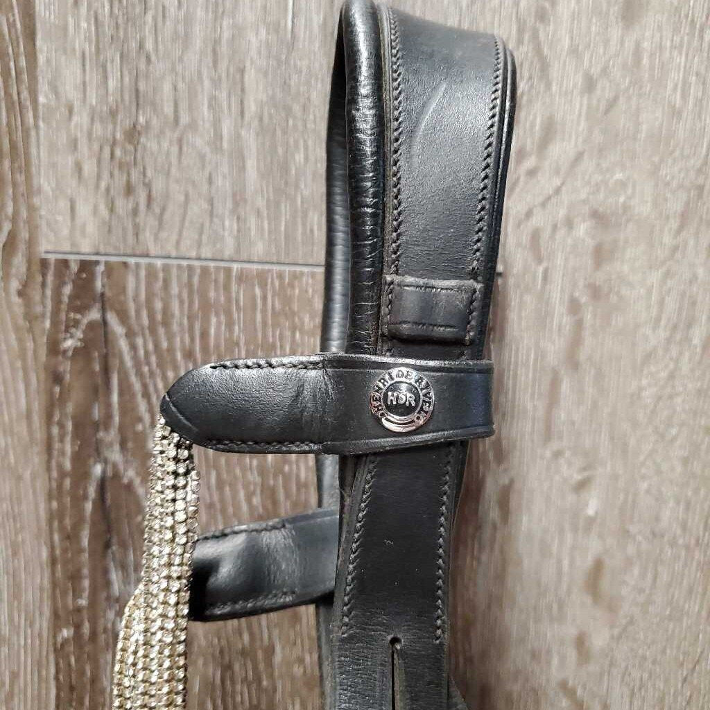 Rolled Monocrown Dressage Bridle, Crank, HDR Bband, Rubber Reins *gc, rubs, faded & dust?dirt, cut end, xholes, NO Bradoon Holder, Missing 1 Keeper
