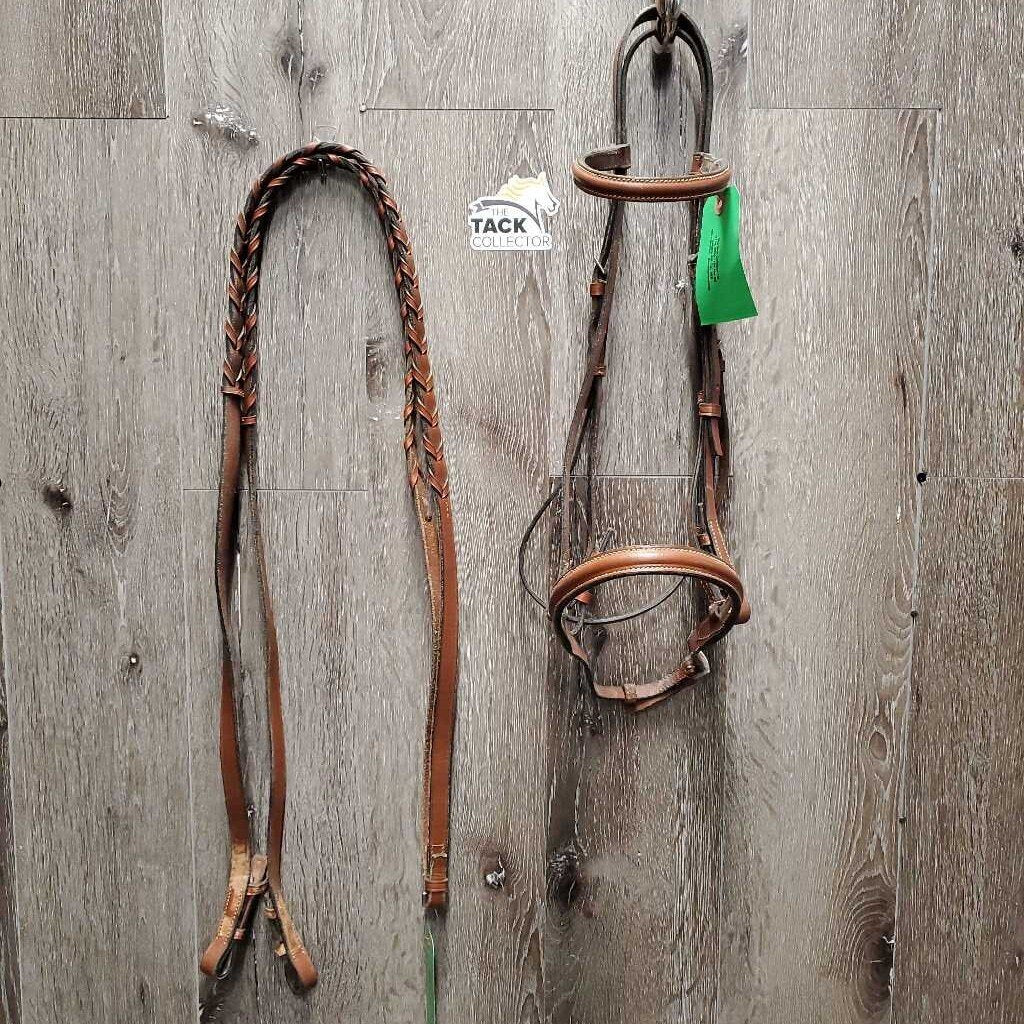 Rsd Bridle, Braided Reins *gc/fair, dry, stiff, broken keeper, stained, tight keeper, scraped edges