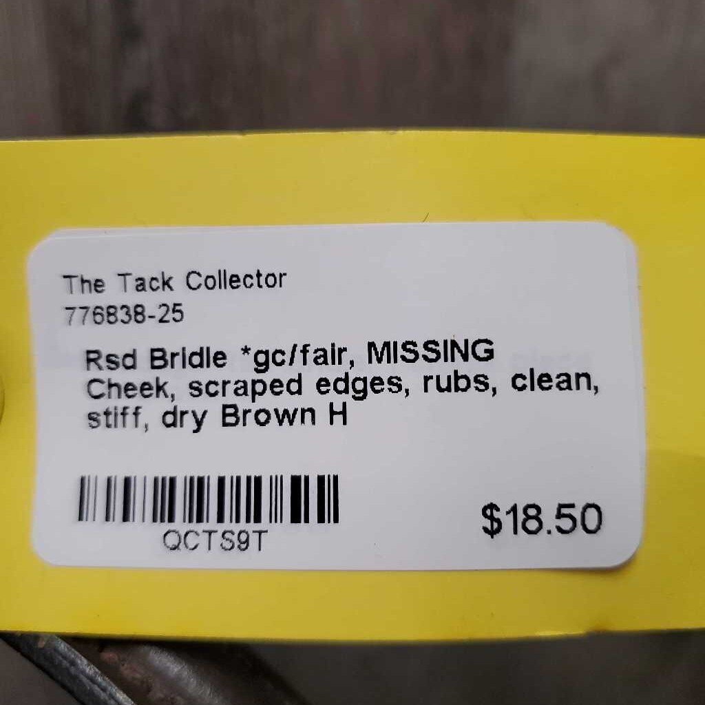Rsd Bridle *gc/fair, MISSING Cheek, scraped edges, rubs, clean, stiff, dry