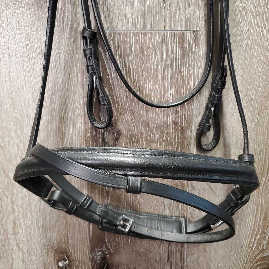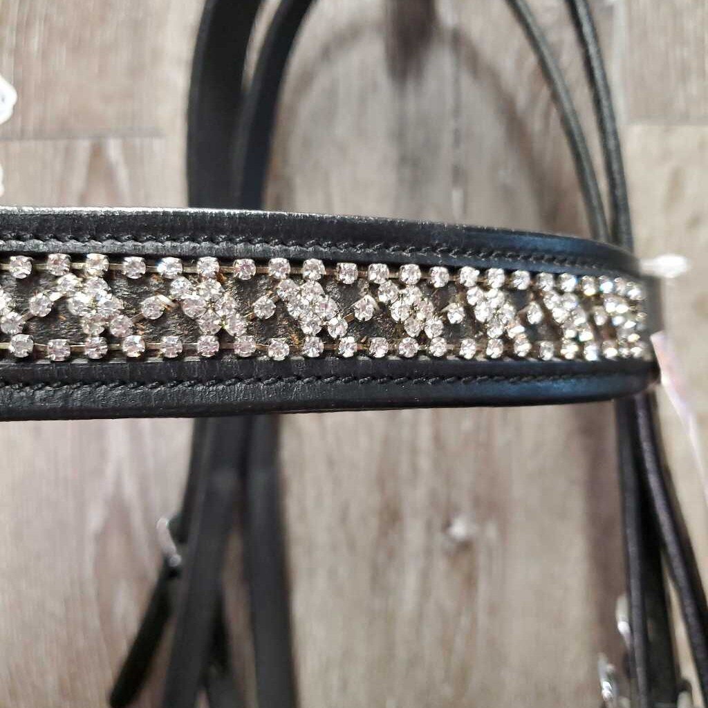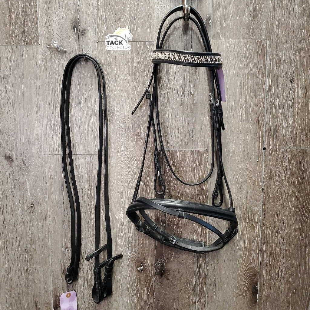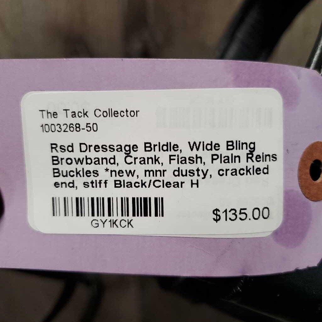 Rsd Dressage Bridle, Wide Bling Browband, Crank, Flash, Plain Reins, Buckles *new, mnr dusty, crackled end, stiff