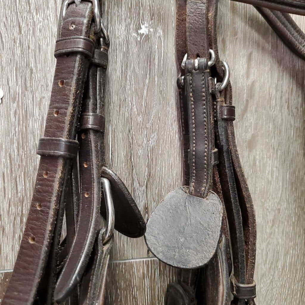 Rsd Figure 8 Monocrown Bridle, Buckles, Rubber Reins *vgc/gc, clean & dirty seams, residue, scraped edges, rubs, torn edge