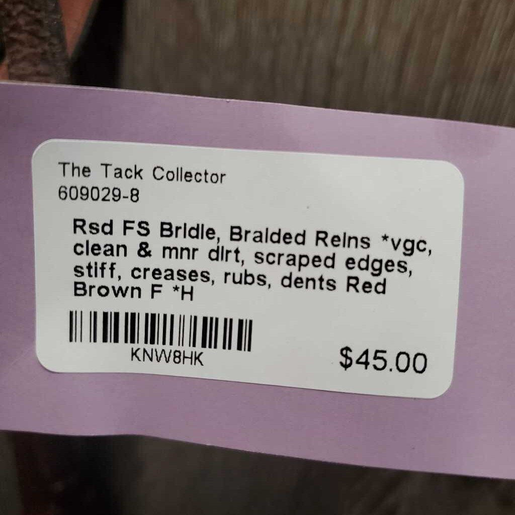 Rsd FS Bridle, Braided Reins *vgc, clean & mnr dirt, scraped edges, stiff, creases, rubs, dents