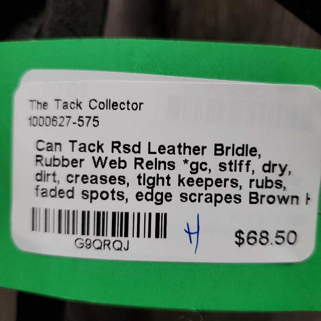 Rsd Leather Bridle, Rubber Web Reins *gc, stiff, dry, dirt, creases, tight keepers, rubs, faded spots, edge scrapes