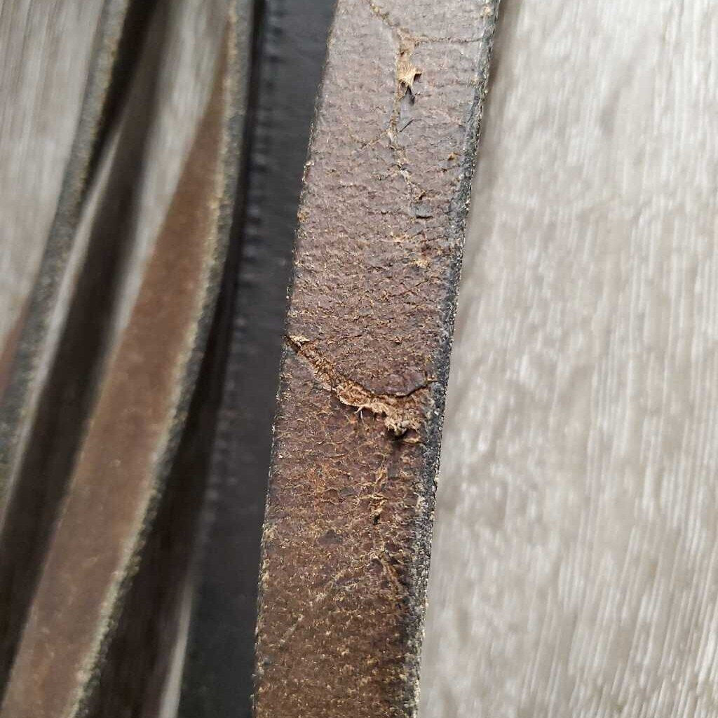 Rsd Leather Bridle Wide Braided Reins *vgc/gc, clean, edge scrapes, dry, stiff, chews, scrapes, mnr undone stitching, faded