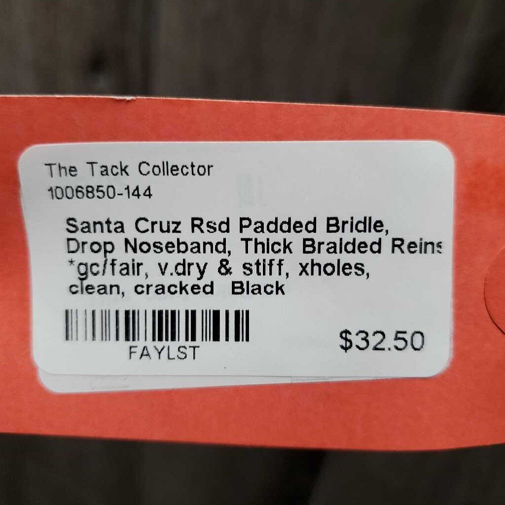Rsd Padded Bridle, Drop Noseband, Thick Braided Reins *gc/fair, v.dry & stiff, xholes, clean, cracked