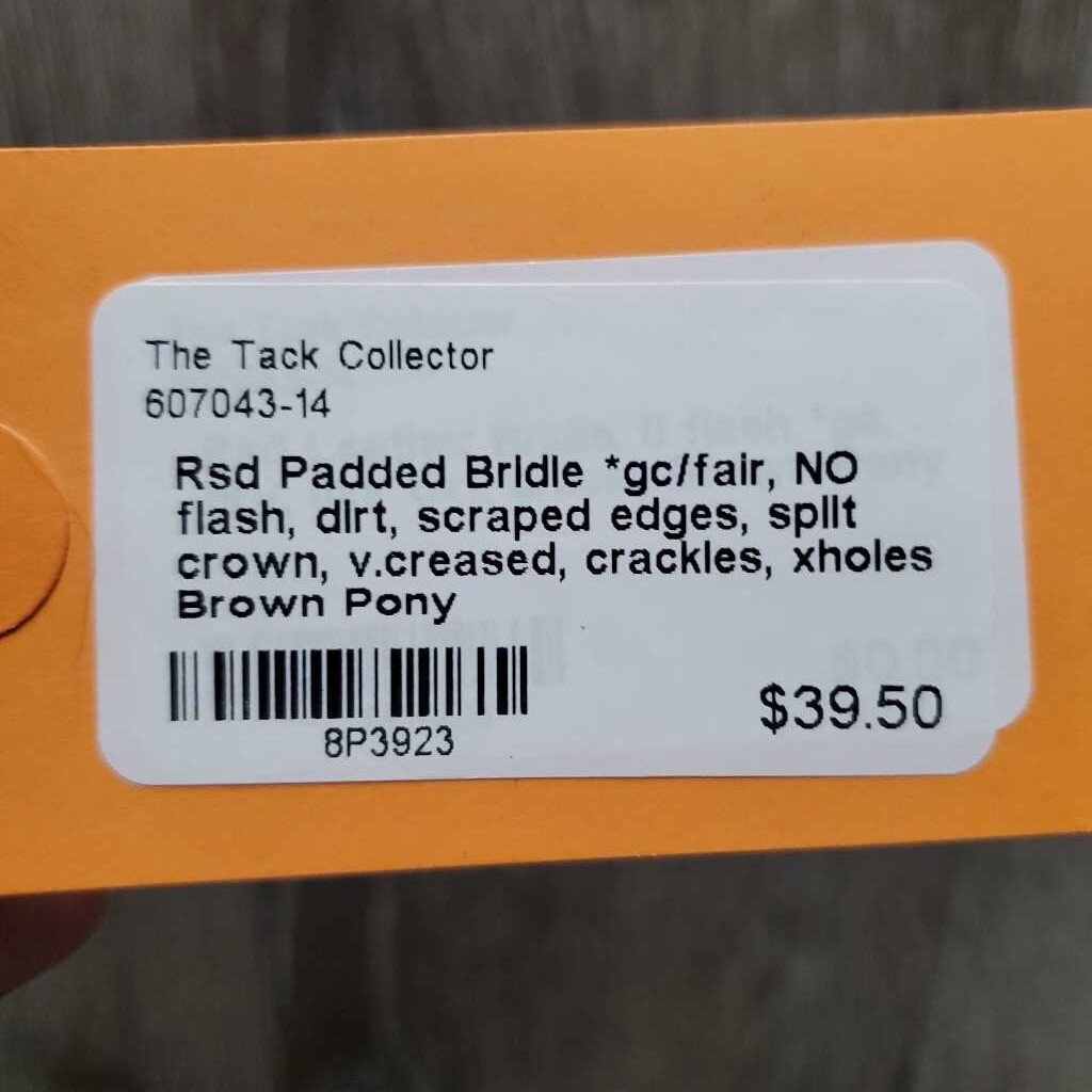 Rsd Padded Bridle *gc/fair, NO flash, dirt, scraped edges, split crown, v.creased, crackles, xholes
