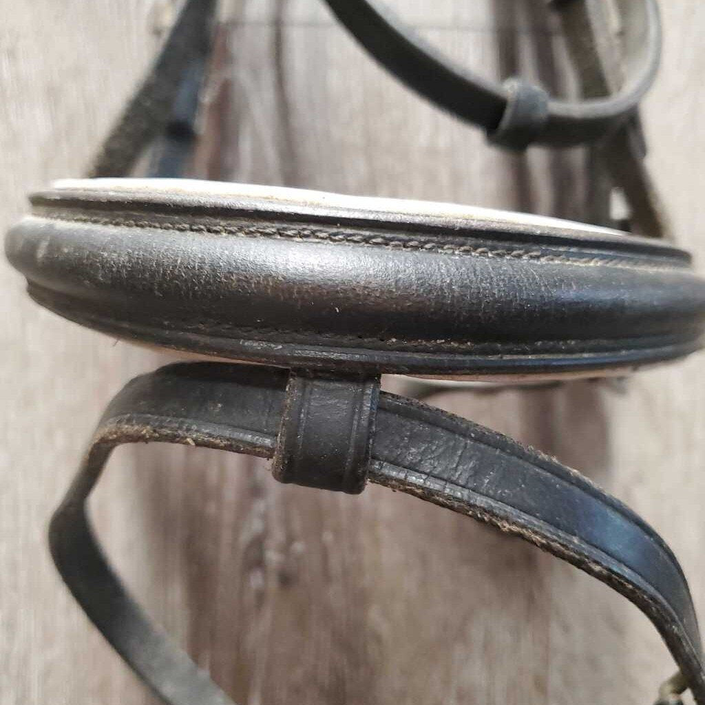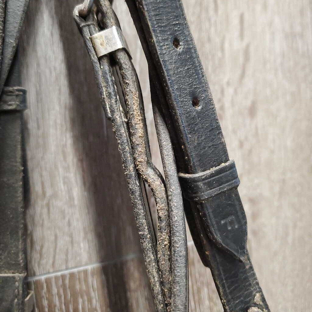 Rsd Padded Dressage Bridle, Crank, Flash *gc, fair, older, stains, dirty, loose clinkers, stiff, dry, scraped edges, tight keeper