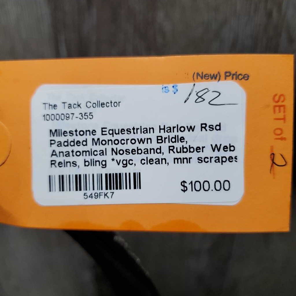 Rsd Padded Monocrown Bridle, Anatomical Noseband, Rubber Web Reins, bling *vgc, clean, mnr scrapes, rubs, dirt & scuffs