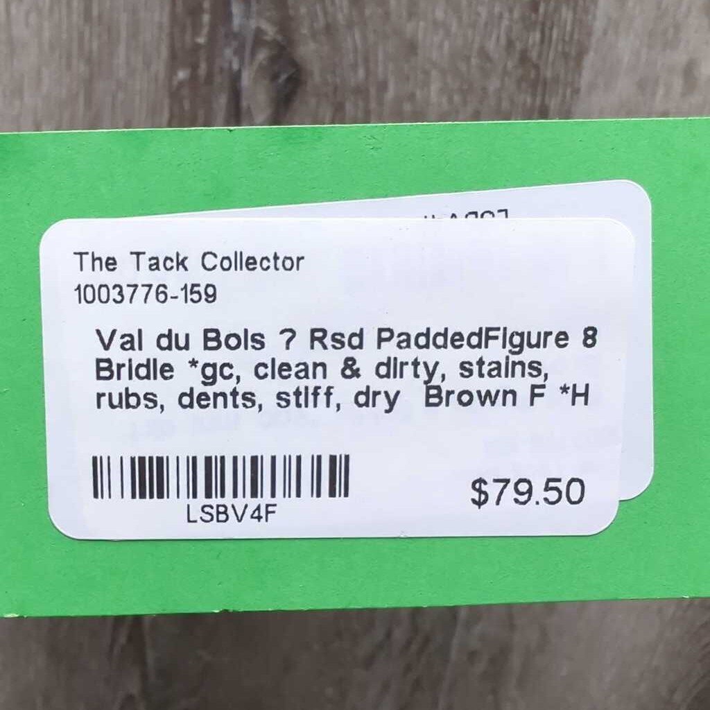 Rsd PaddedFigure 8 Bridle *gc, clean & dirty, stains, rubs, dents, stiff, dry