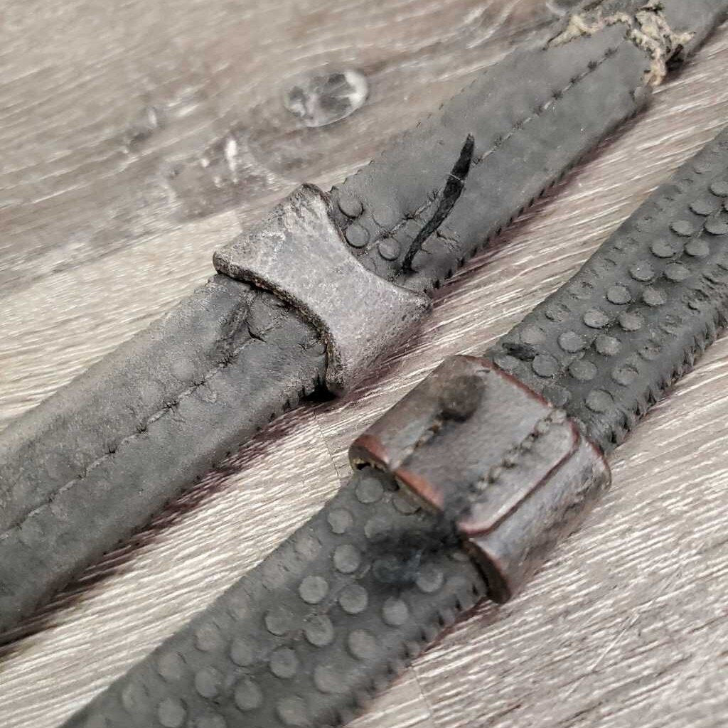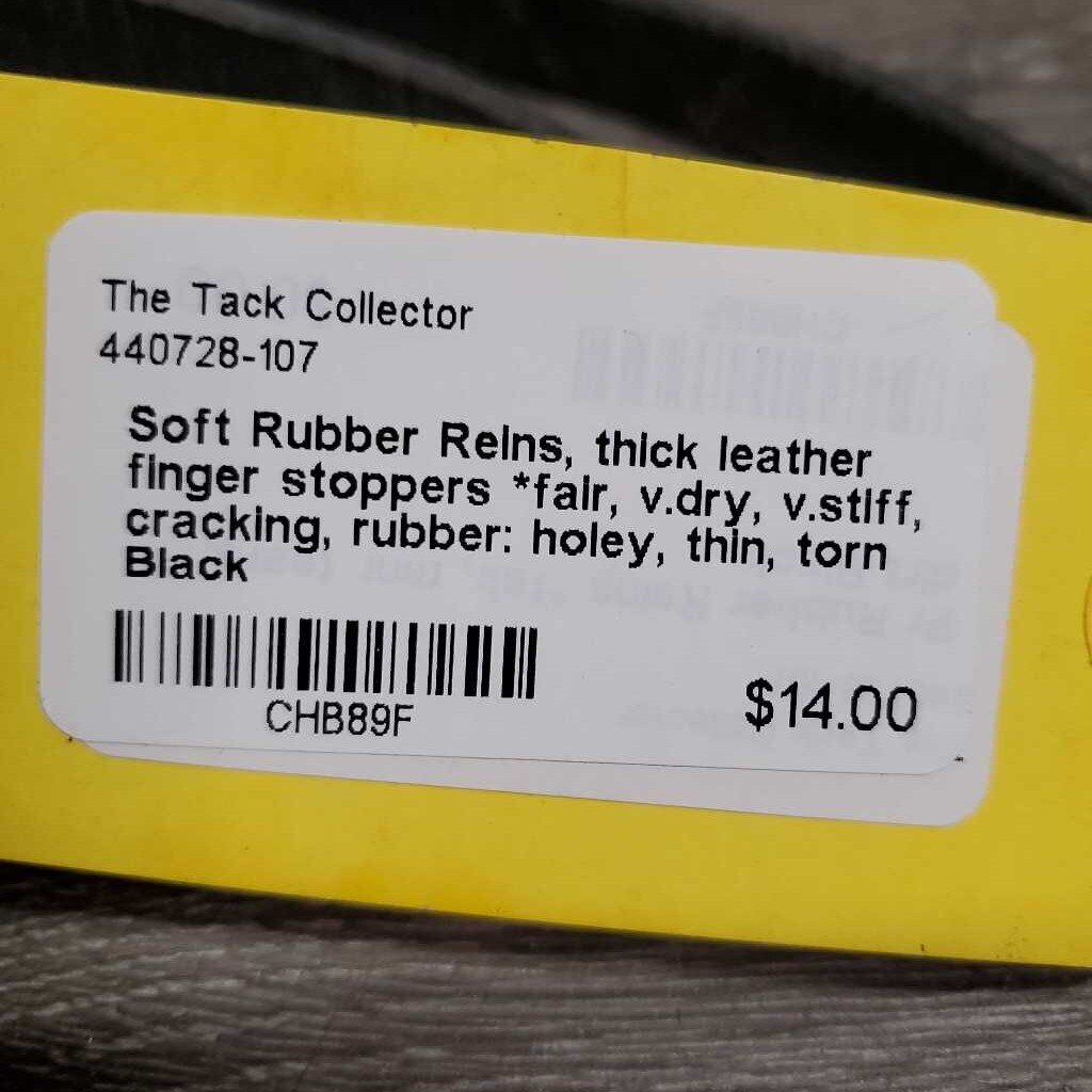 Soft Rubber Reins, thick leather finger stoppers *fair, v.dry, v.stiff, cracking, rubber: holey, thin, torn