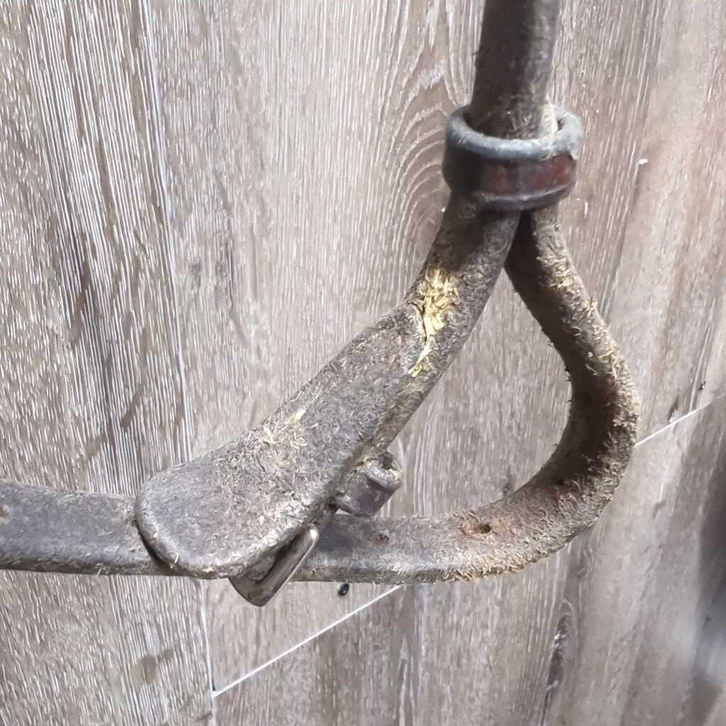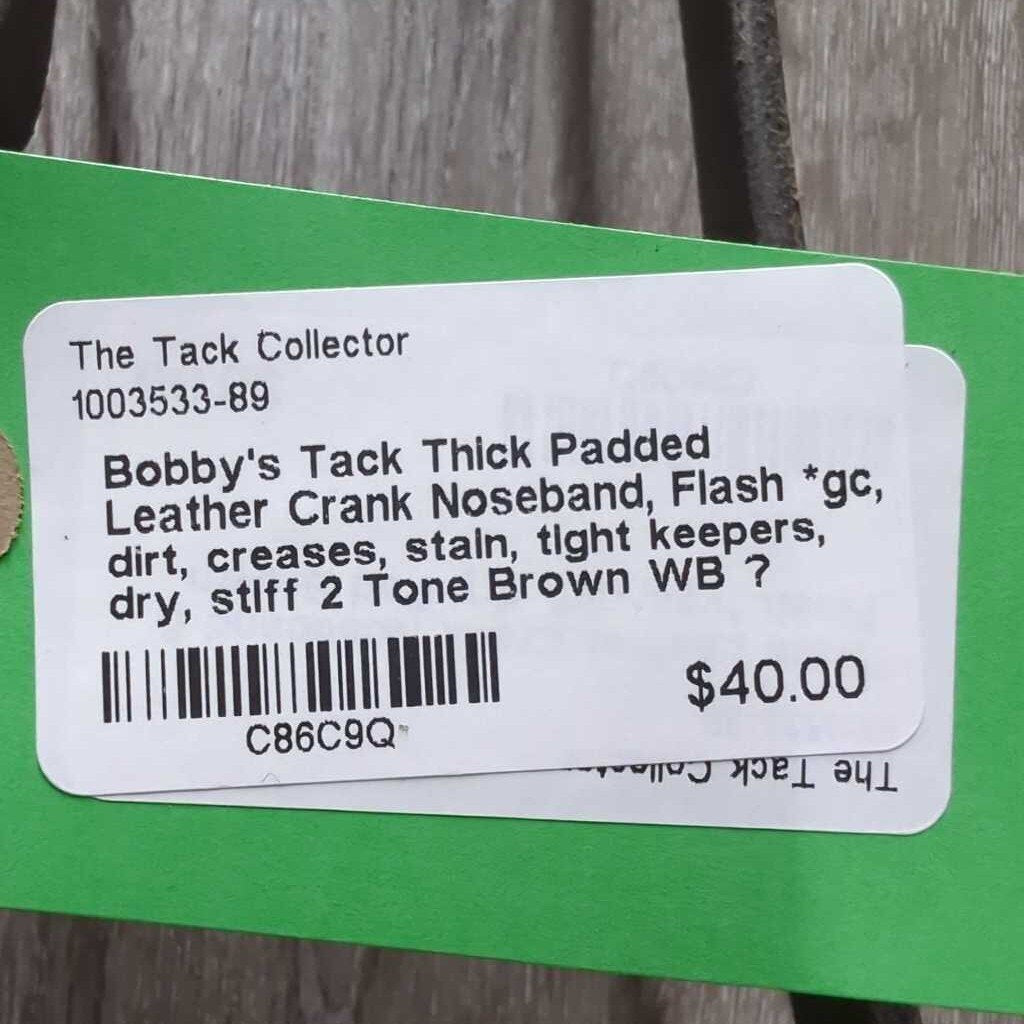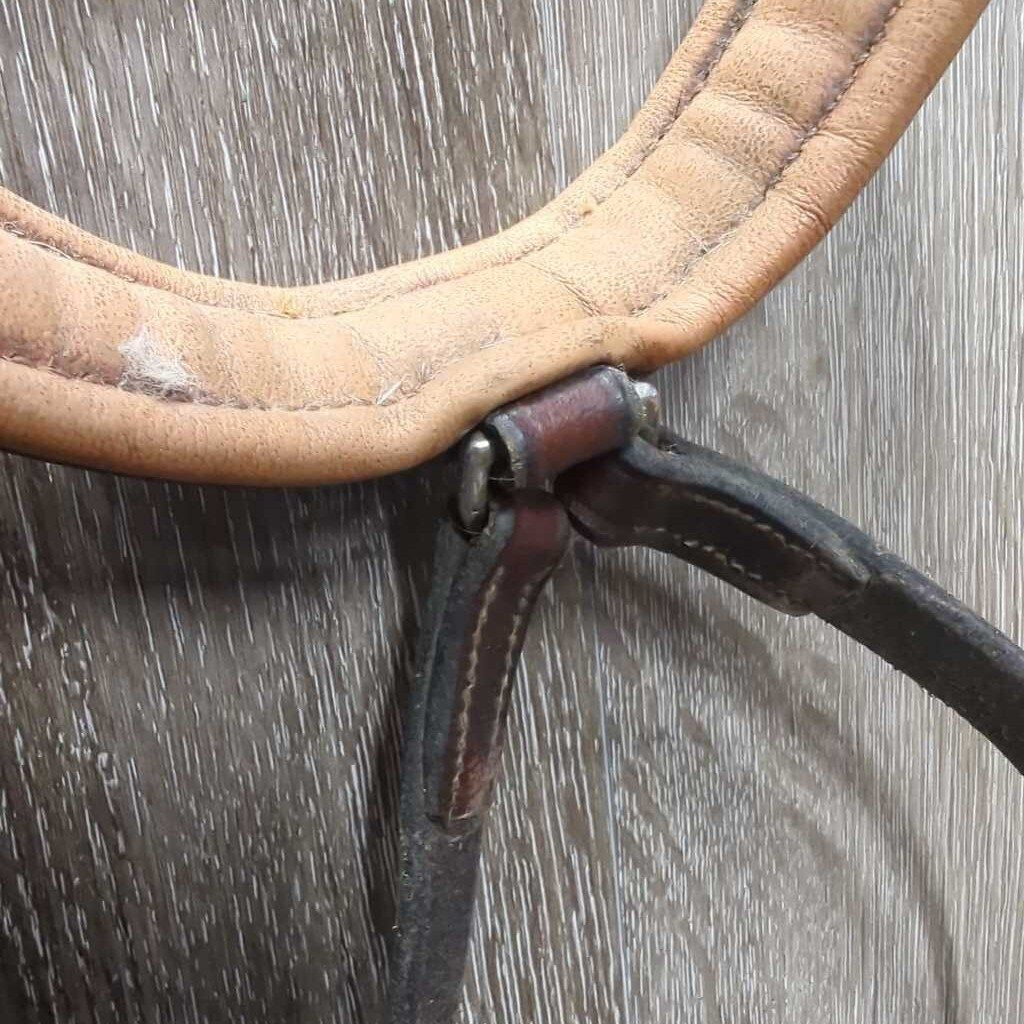Thick Padded Leather Crank Noseband, Flash *gc, dirt, creases, stain, tight keepers, dry, stiff