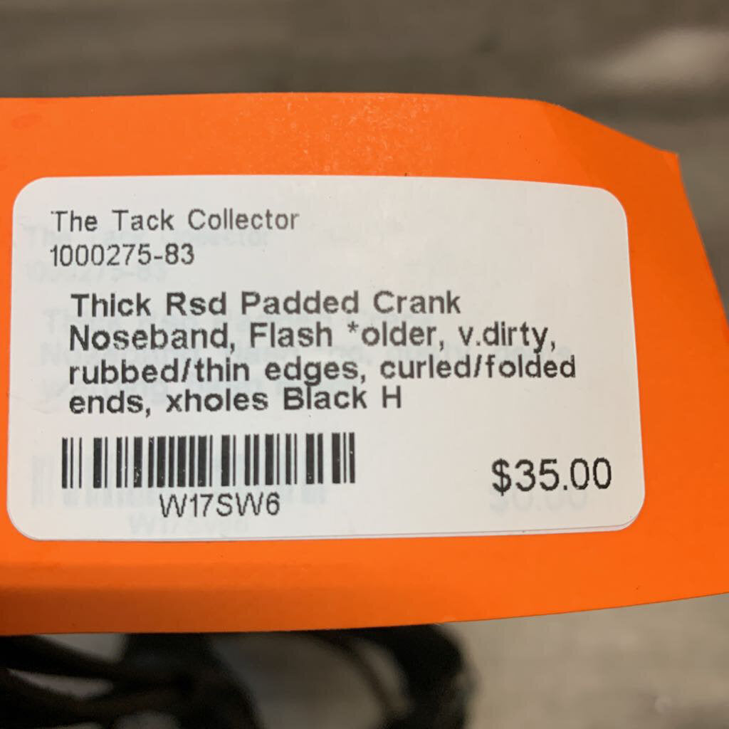 Thick Rsd Padded Crank Noseband, Flash *older, v.dirty, rubbed/thin edges, curled/folded ends, xholes