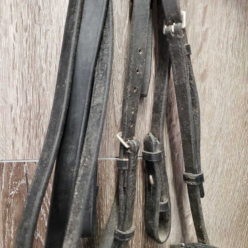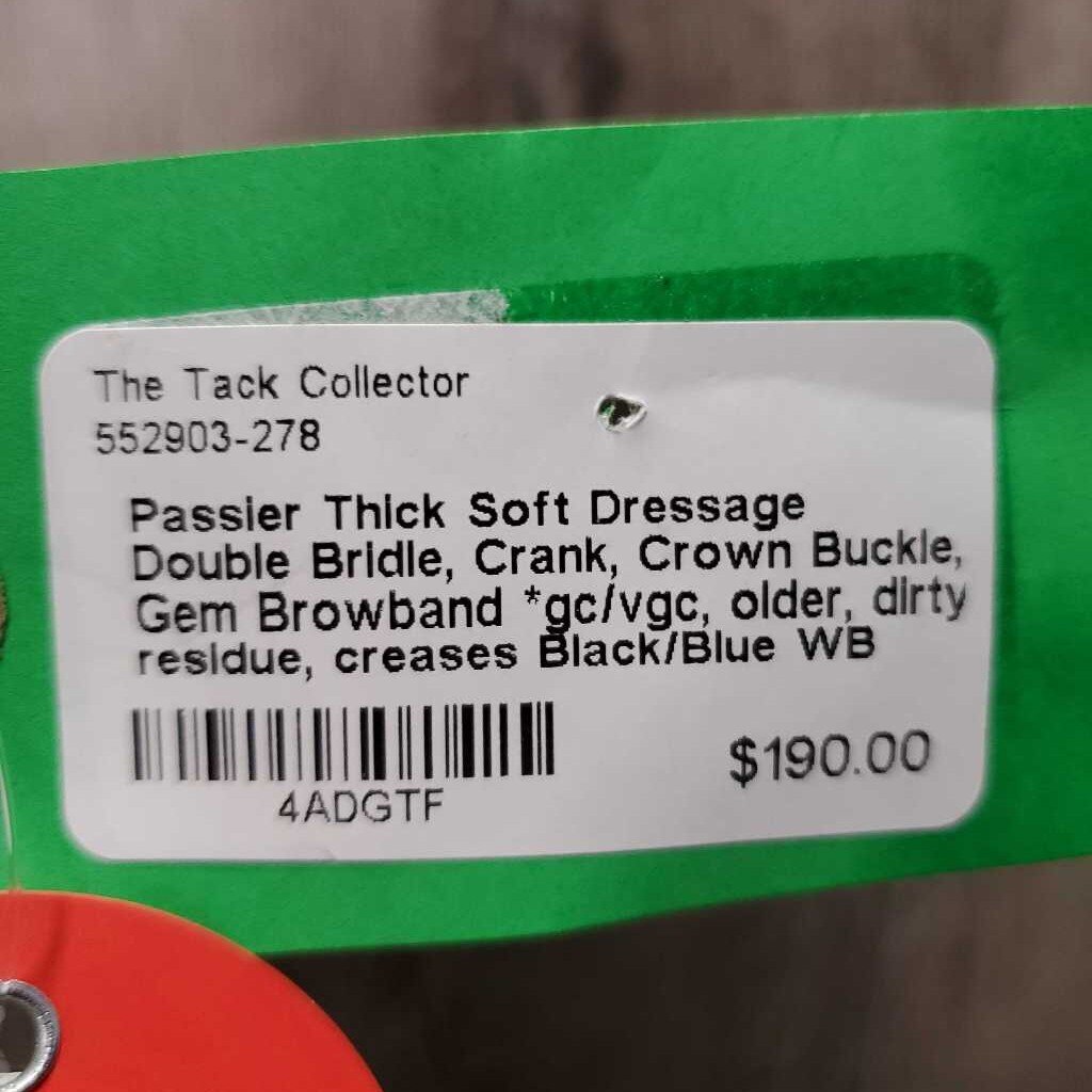 Thick Soft Dressage Double Bridle, Crank, Crown Buckle, Gem Browband *gc/vgc, older, dirty, residue, creases