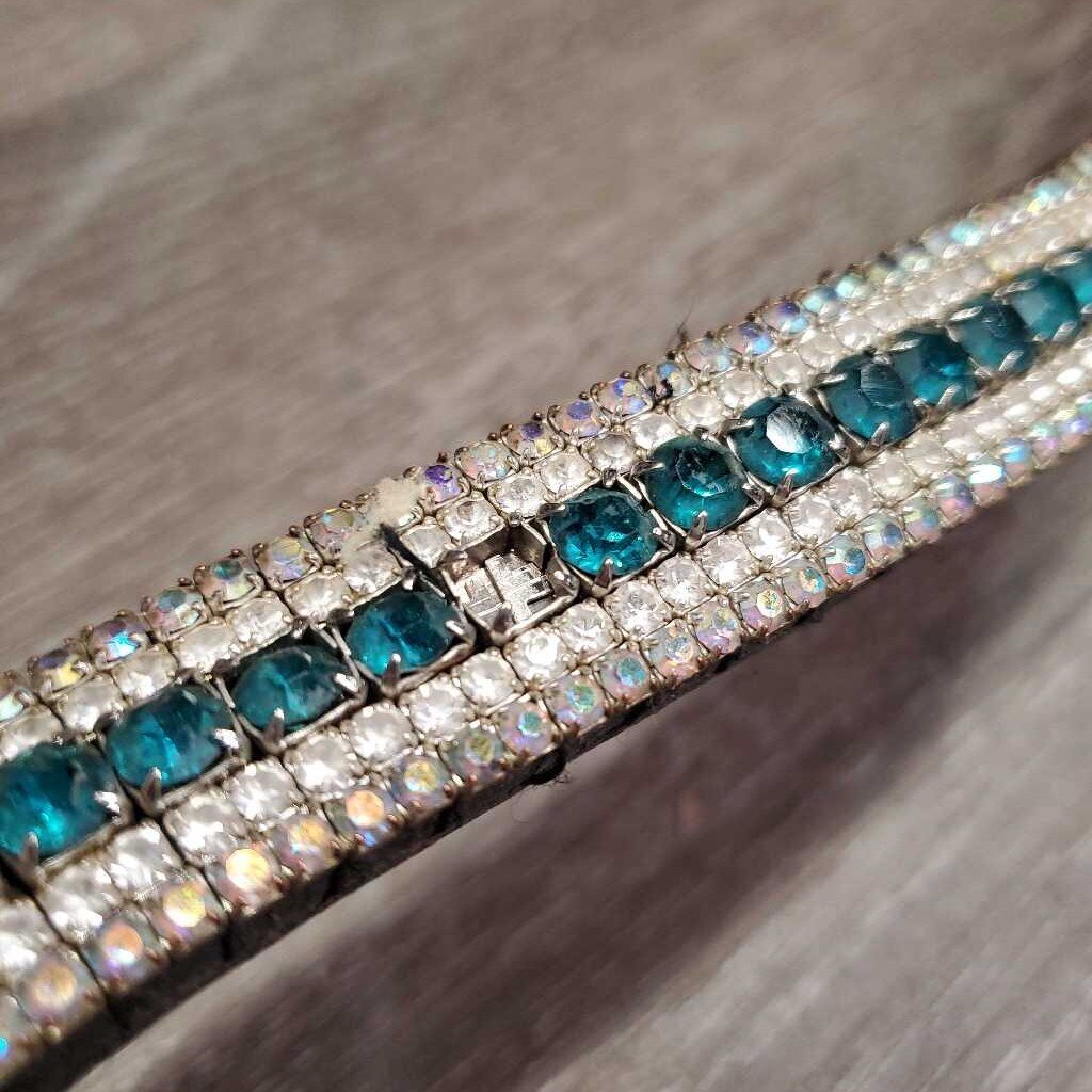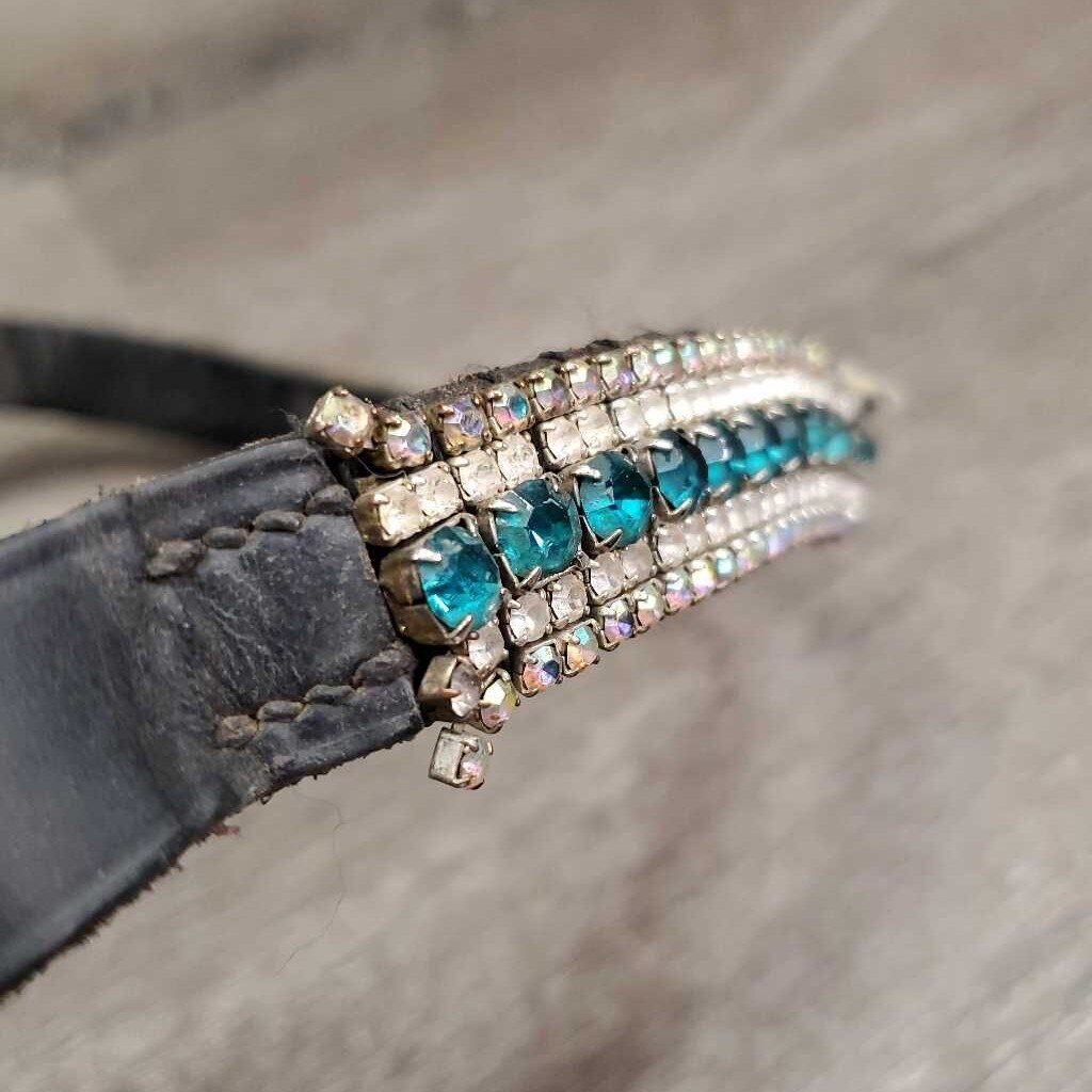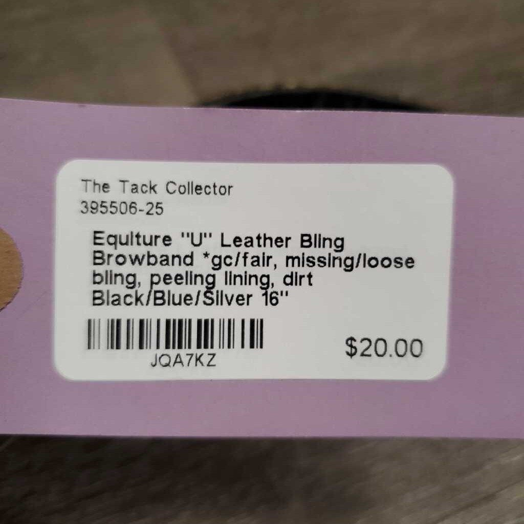 "U" Leather Bling Browband *gc/fair, missing/loose bling, peeling lining, dirt