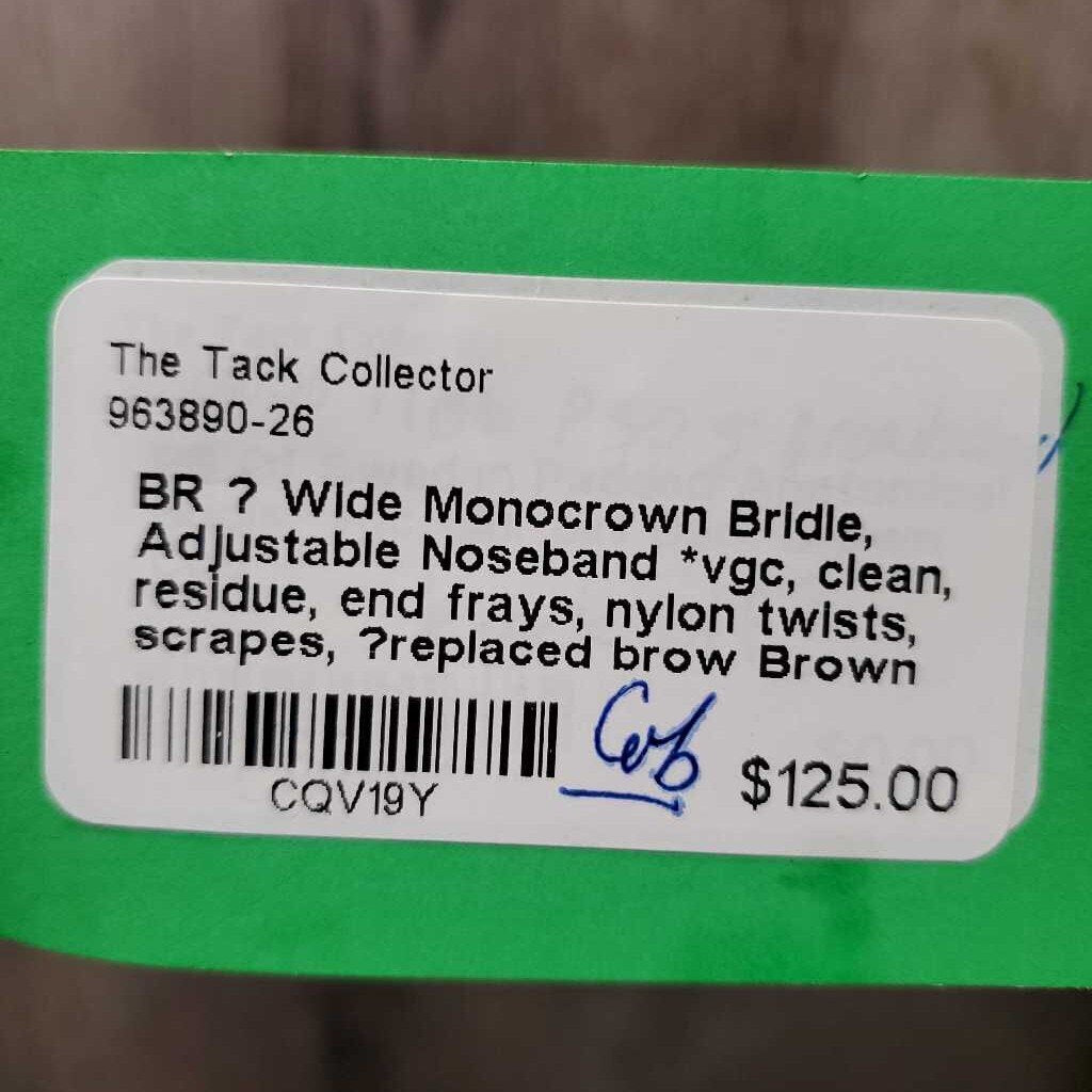 Wide Monocrown Bridle, Adjustable Noseband *vgc, clean, residue, end frays, nylon twists, scrapes, ?replaced brow