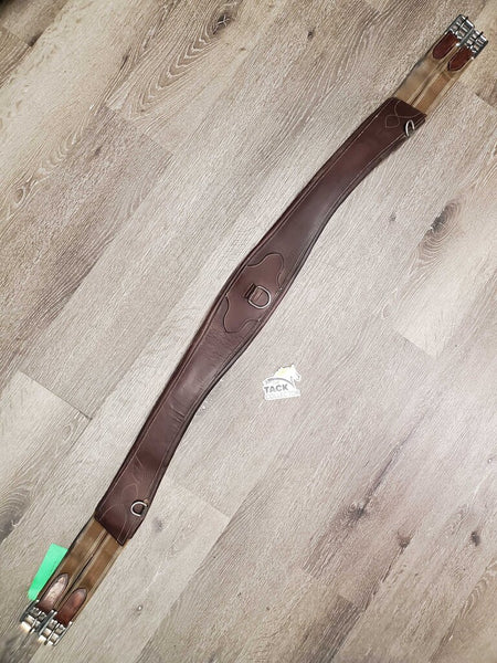 Padded Leather Girth, 2x els, 3x D Ring *vgc/gc, clean, rubs, faded, scratches, dry, deep/hard creases, stretched els Size: 54 *55.5" $68.50