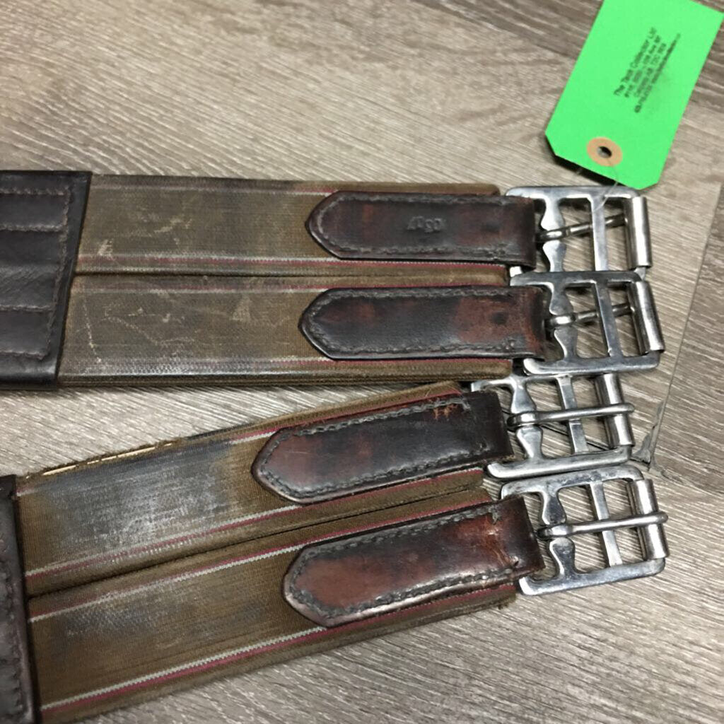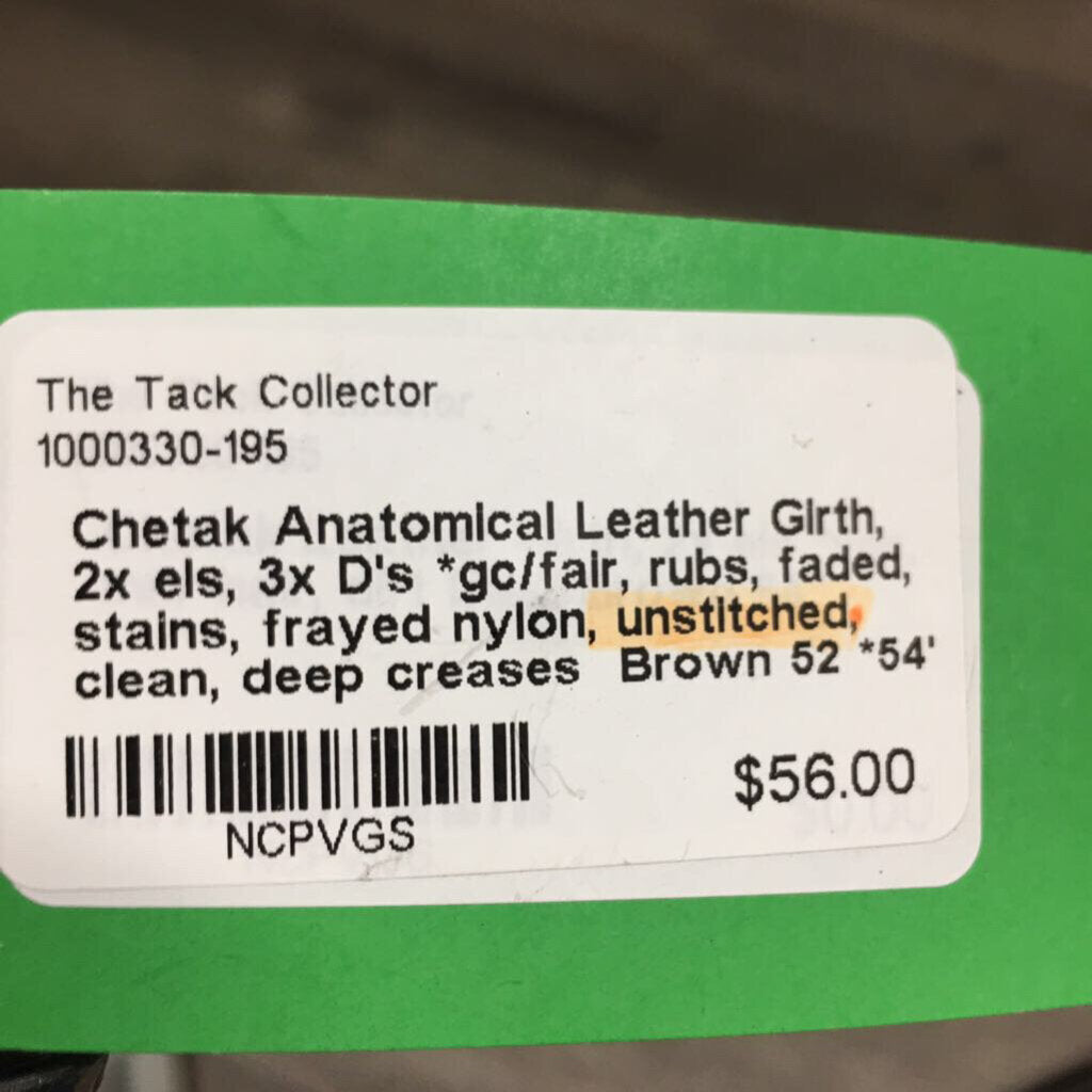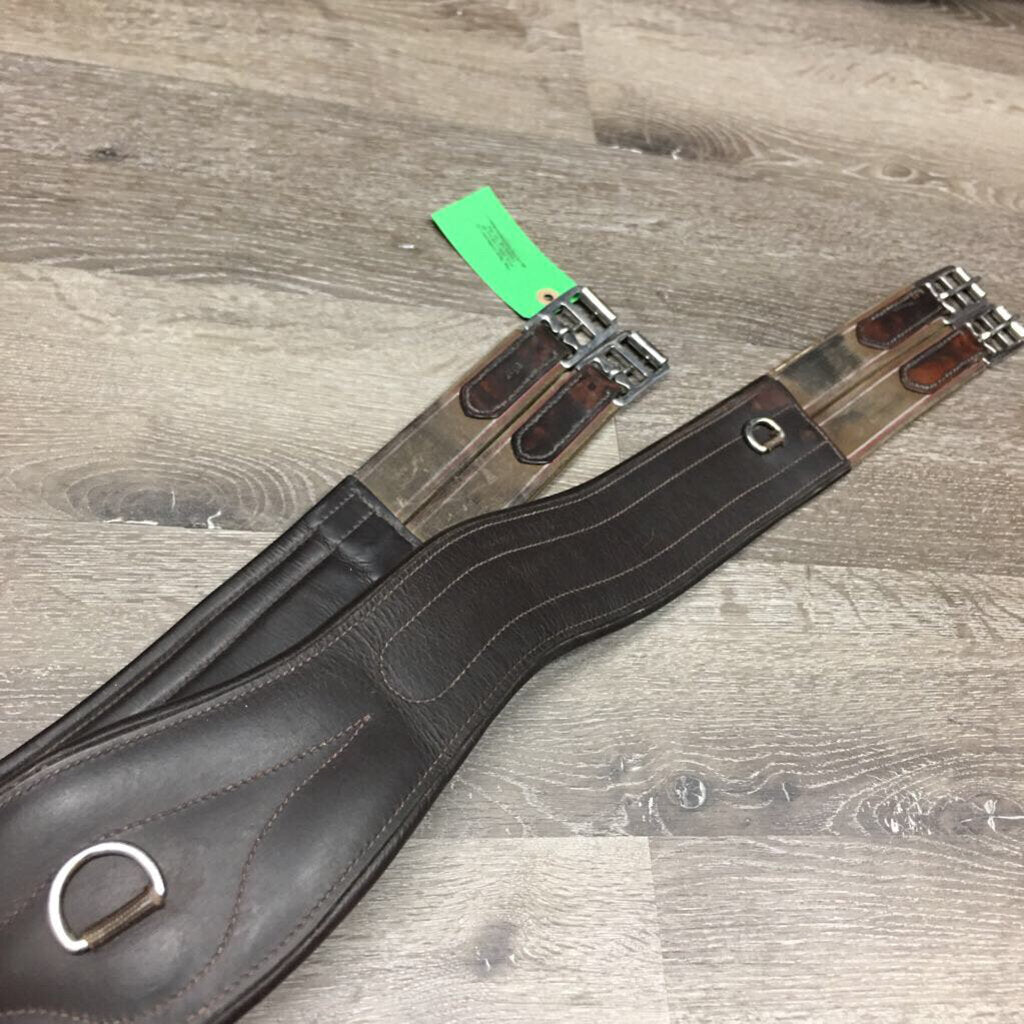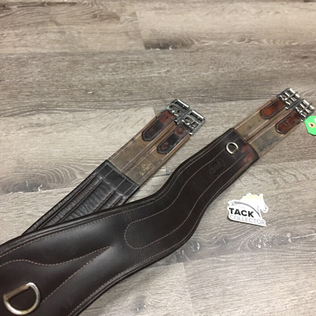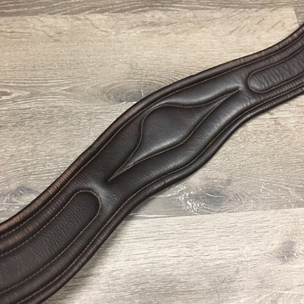 Anatomical Leather Girth, 2x els, 3x D's *gc/fair, rubs, faded, stains, frayed nylon, unstitched, clean, deep creases