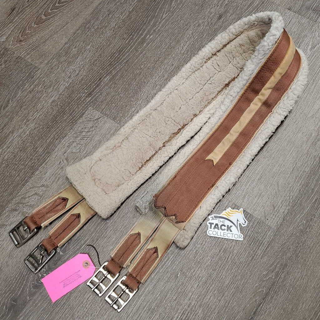 Cotton Nylon Web Fleece Lined Girth, x2 els, d ring *fair, clumpy, stained, puckering, holey/torn edges