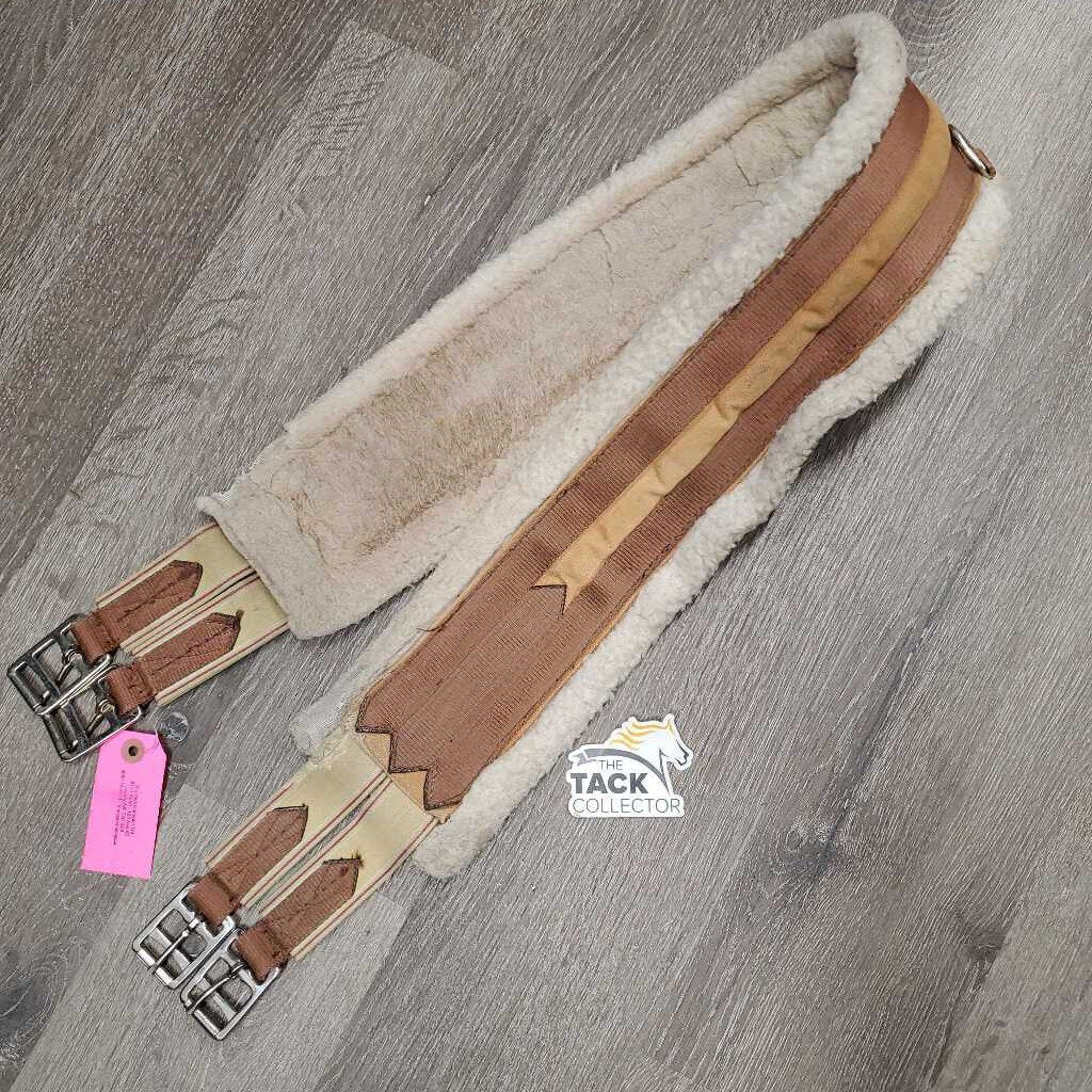 Cotton Web Fleece Girth, 2x Elastic, Center D Ring *gc, older, clean, faded, thin/holey edges, clumpy, v.hairy, stretched elastic