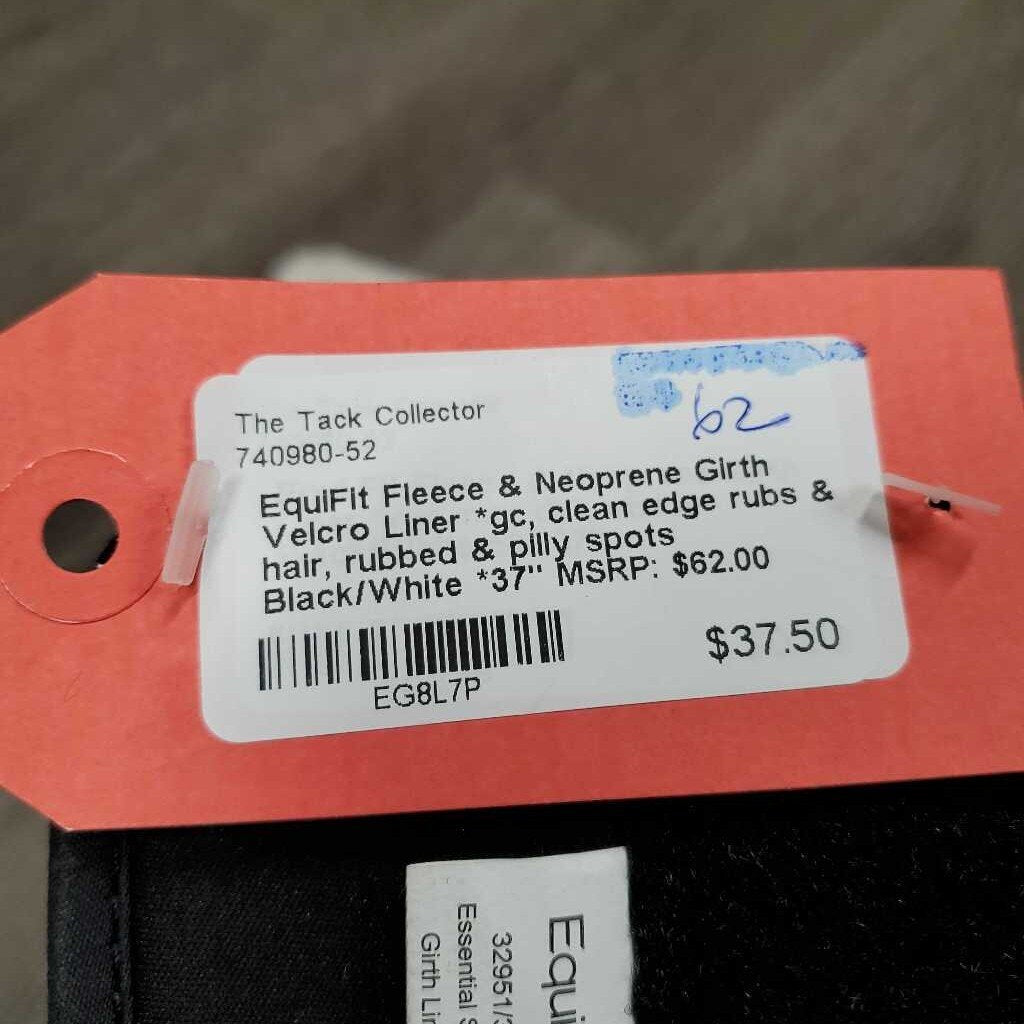 Fleece & Neoprene Girth Velcro Liner *gc, clean edge rubs & hair, rubbed & pilly spots