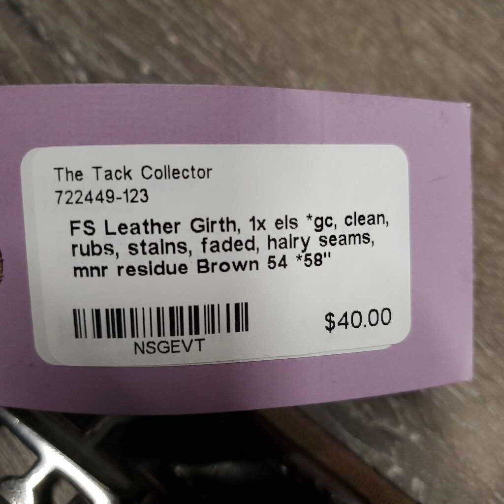 FS Leather Girth, 1x els *gc, clean, rubs, stains, faded, hairy seams, mnr residue