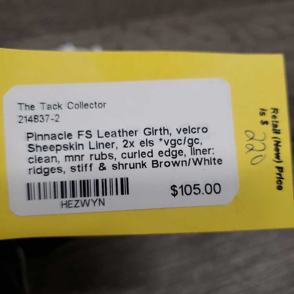 FS Leather Girth, velcro Sheepskin Liner, 2x els *vgc/gc, clean, mnr rubs, curled edge, liner: ridges, stiff & shrunk