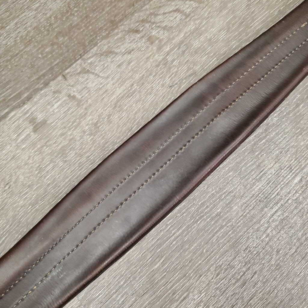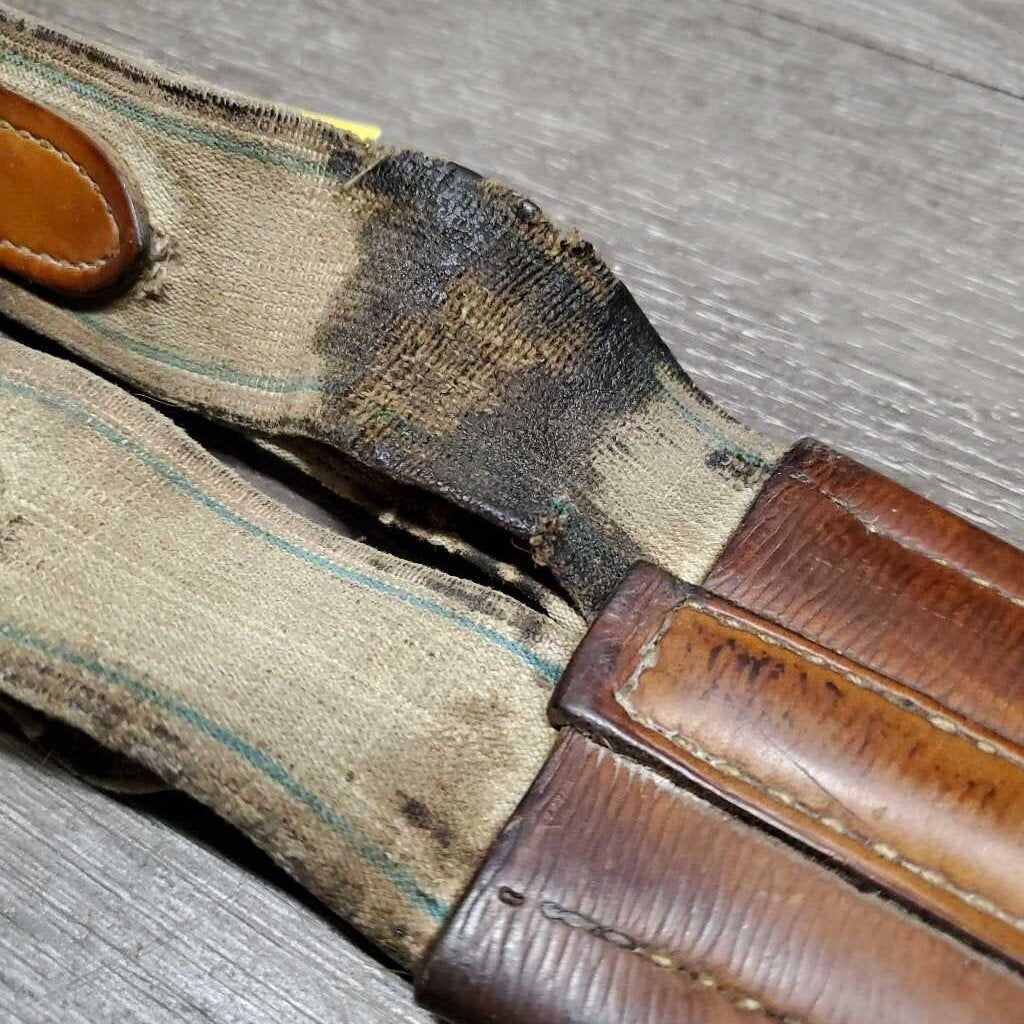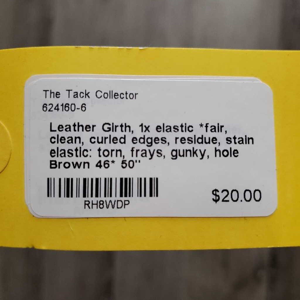 Leather Girth, 1x elastic *fair, clean, curled edges, residue, stain elastic: torn, frays, gunky, hole