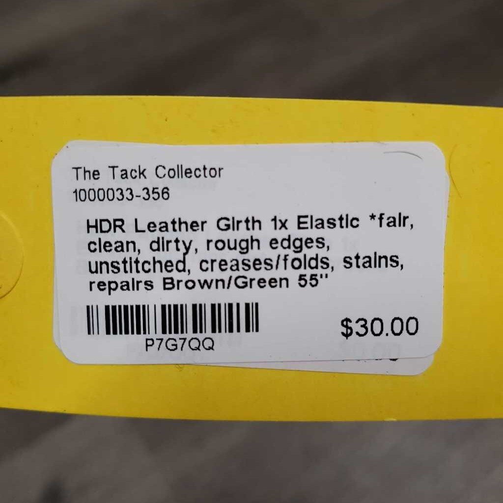 Leather Girth 1x Elastic *fair, clean, dirty, rough edges, unstitched, creases/folds, stains, repairs