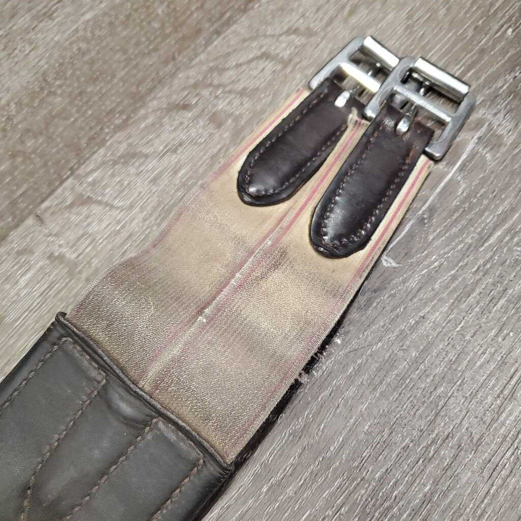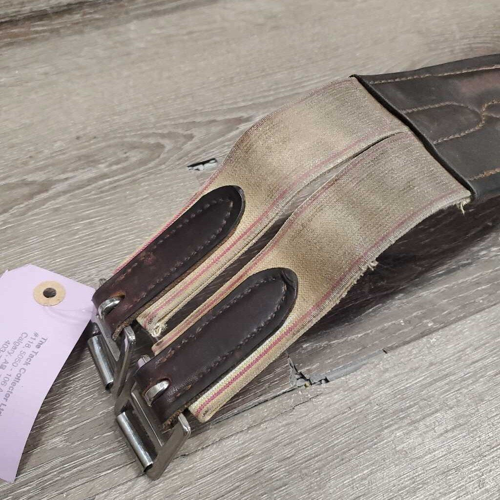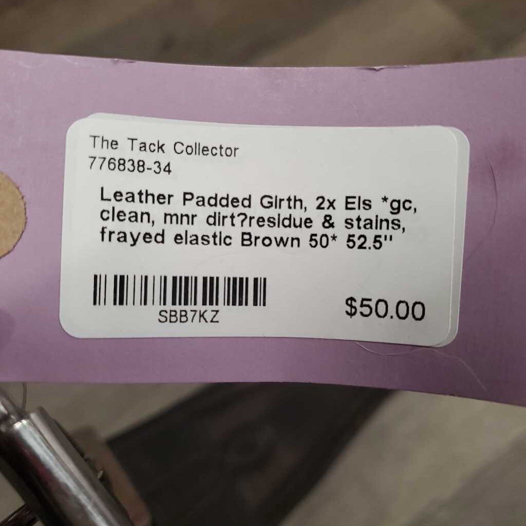 Leather Padded Girth, 2x Els *gc, clean, mnr dirt?residue & stains, frayed elastic