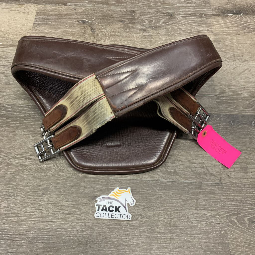 Lg Padded Belly Girth, 2x els, D Ring, strap *frayed/thin els, gc, clean, mnr dirty edges, scrapes, gouges