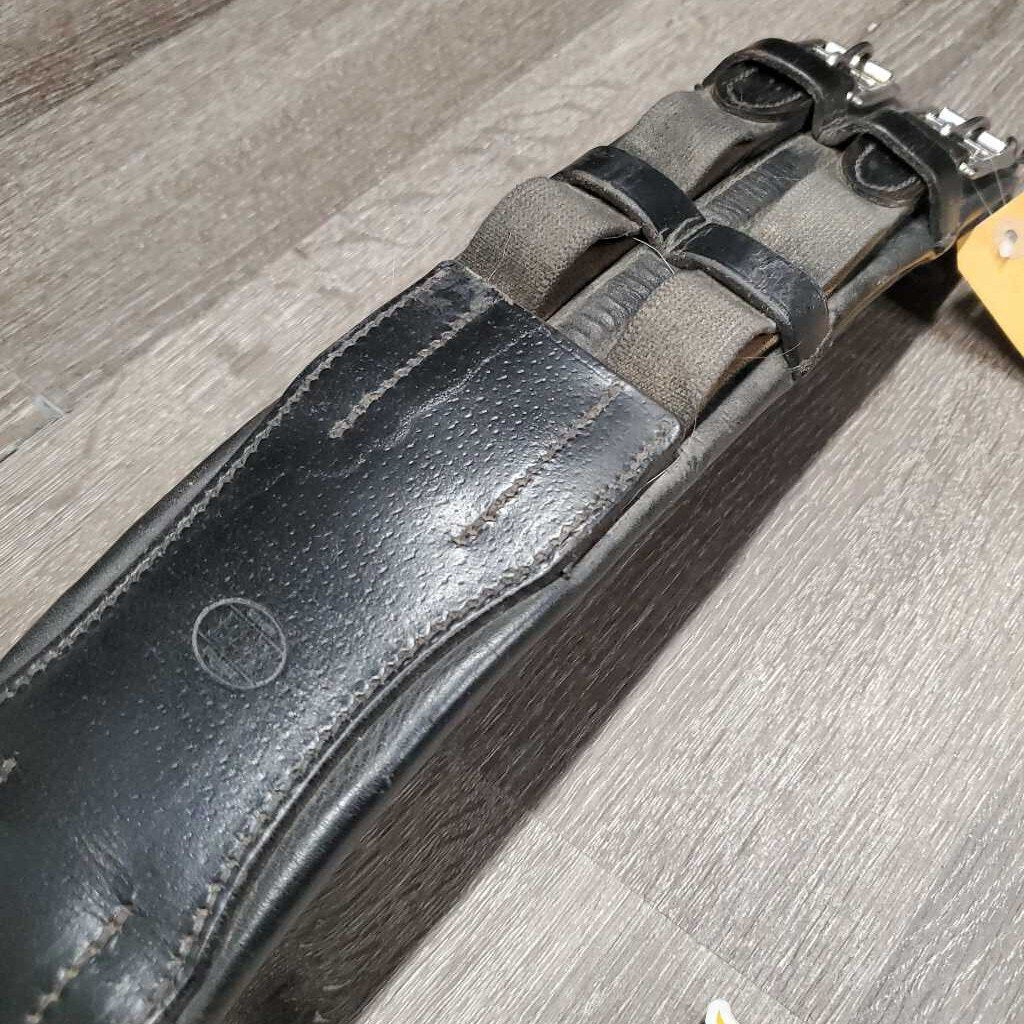 Narrow Padded Dressage Girth, 2x els *fair, dirty, torn/missing keepers, older, stretched elastics, stiff, threads