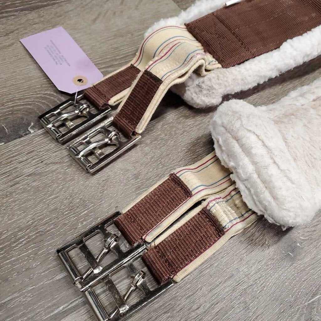 Nylon Web & Fleece Girth, 2x els, D Ring *vgc/gc, clean, clumpy, hairy, els: stretched & stained, edge rubs & thin spots