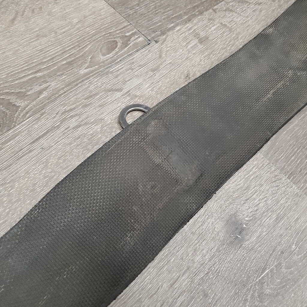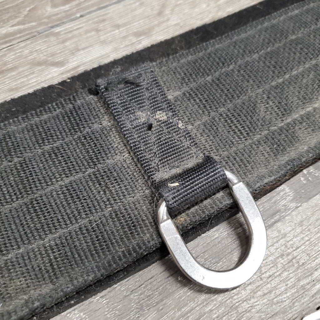 Nylon Web, Neoprene Velcro Liner, 2x D Els, D Ring *gc/fair, hairy, residue, clean, faded, stretched els, v.chipped liner