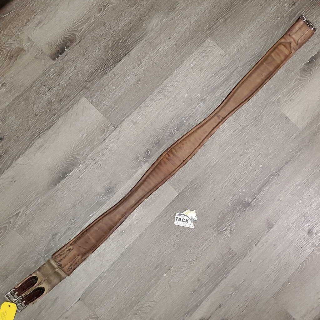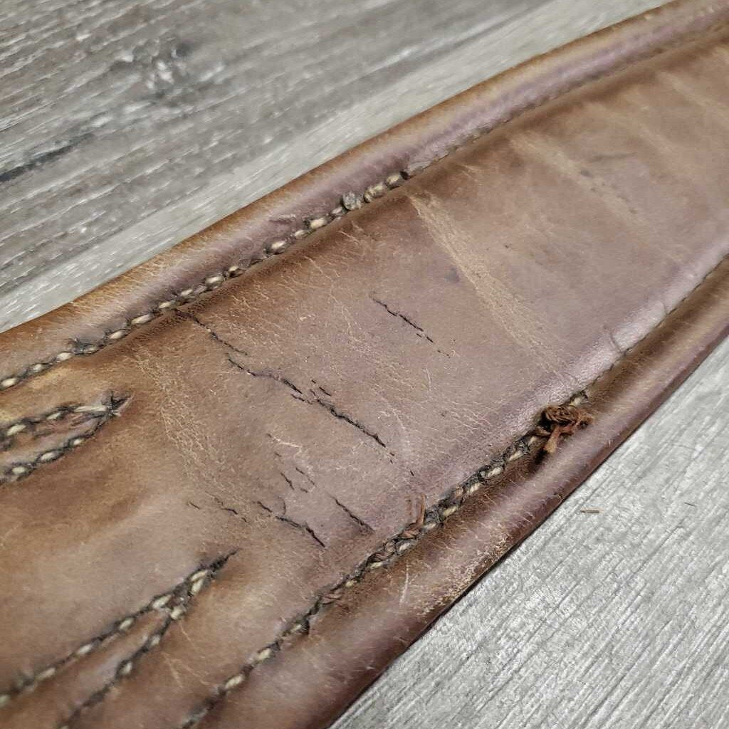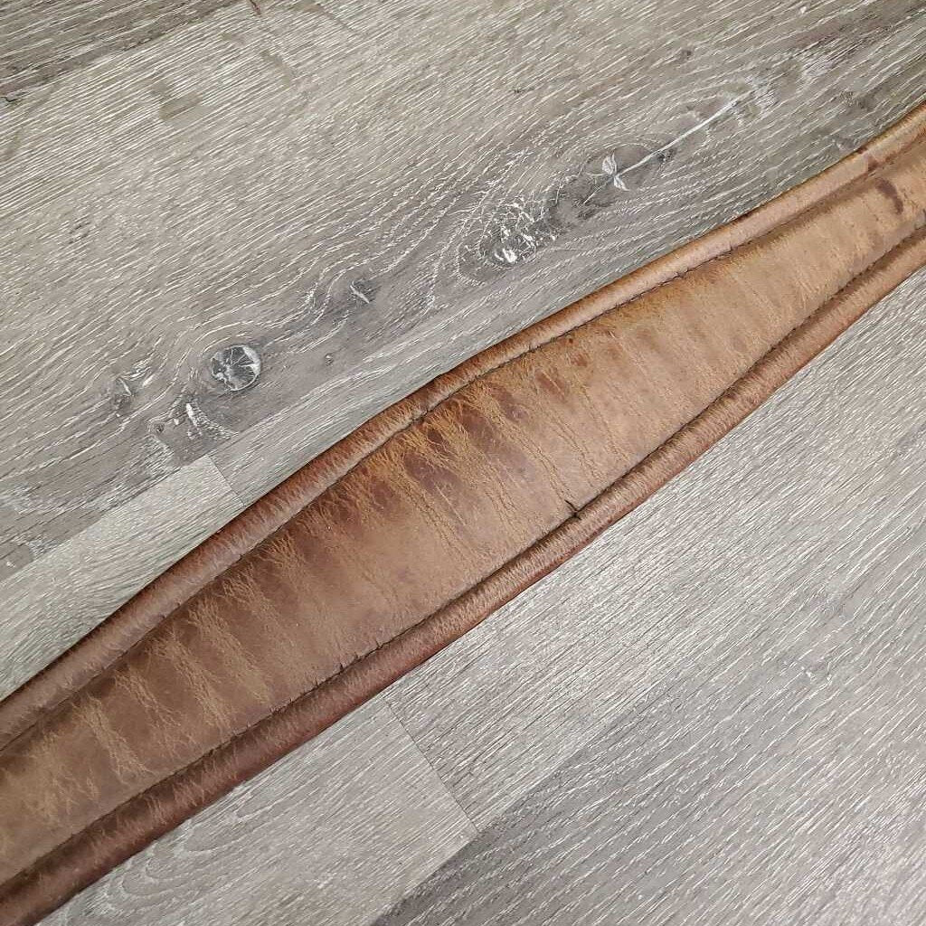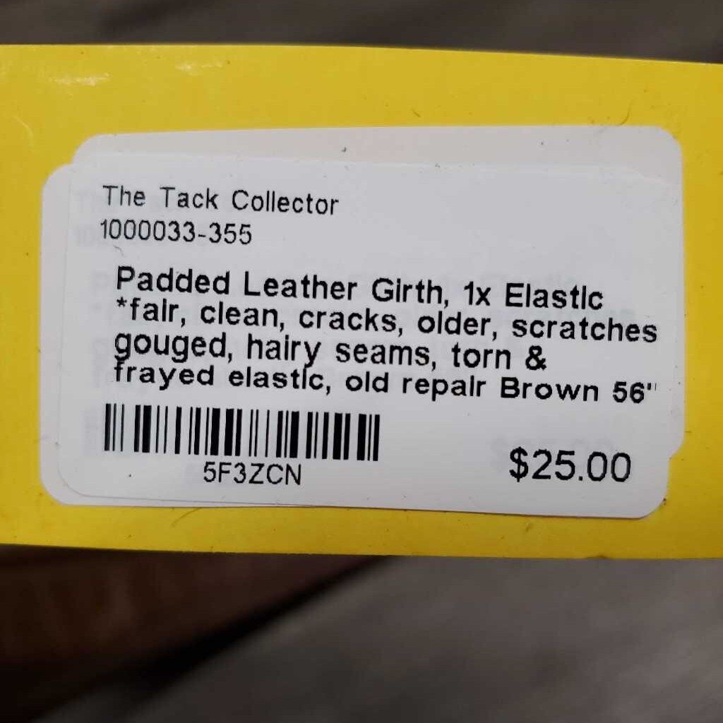Padded Leather Girth, 1x Elastic *fair, clean, cracks, older, scratches, gouged, hairy seams, torn & frayed elastic, old repair