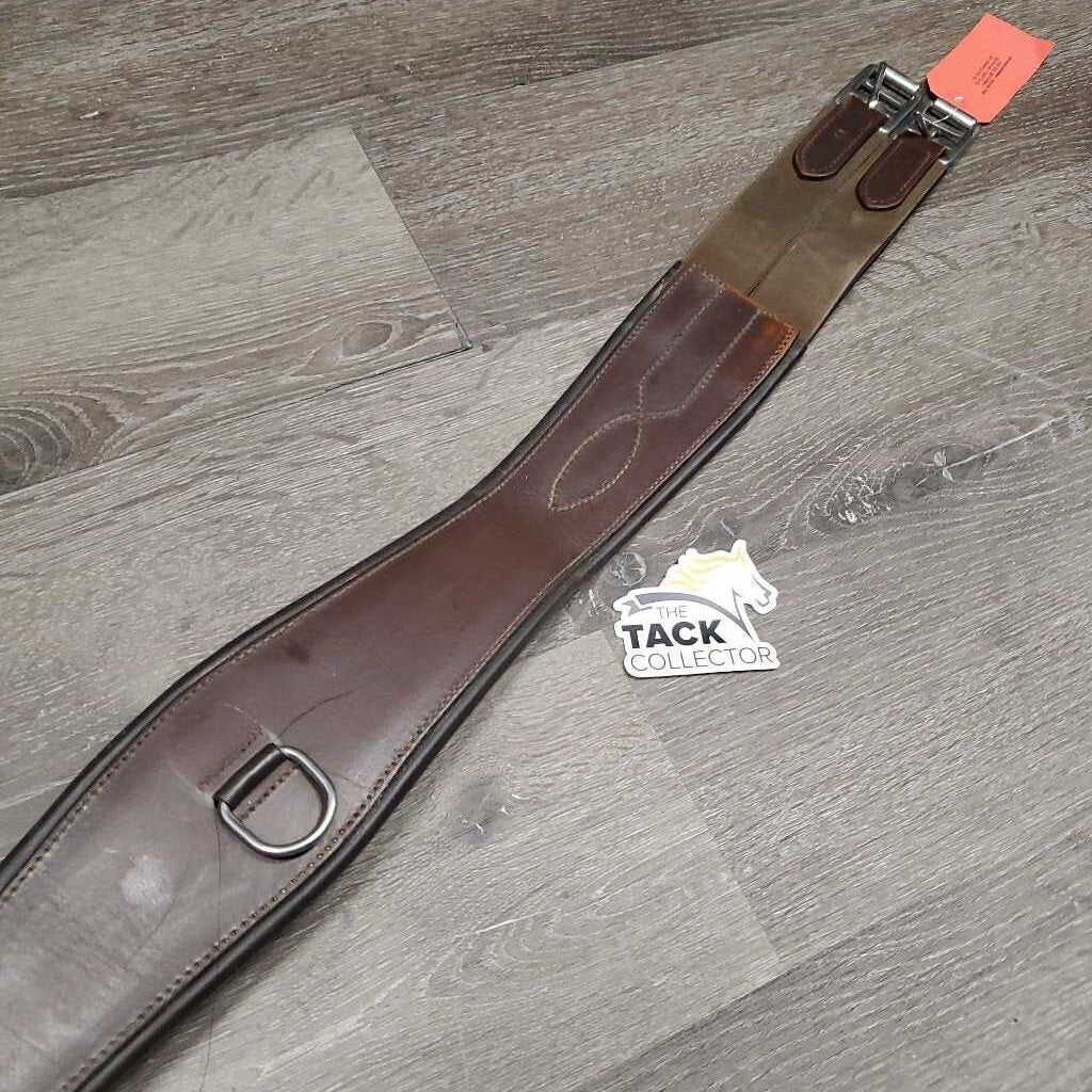 Padded Leather Girth, 1x Els, D Ring *gc, clean, residue, rubs, discolored spots, hairy seams, mnr scrapes, stiff